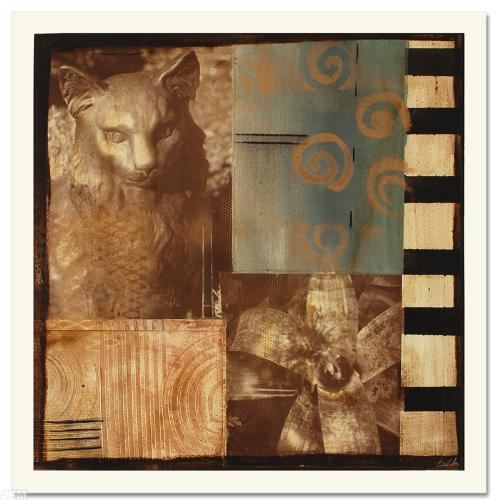 Visions is an Original mixed media collage on paper, hand signed by Zelda. Measures approx. 30" x 44" (border), 24" x 24" (image).