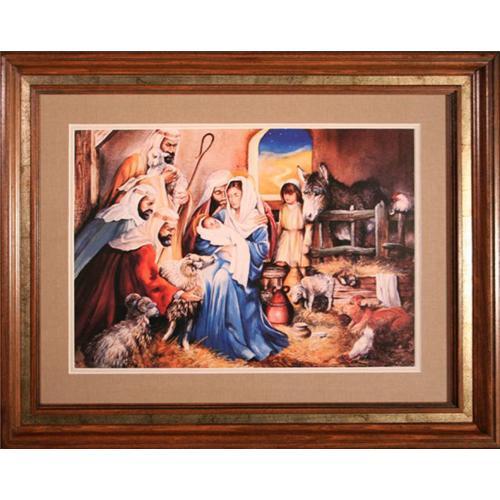 This unique print by Gail Lodge portrays the visit of the Shepards to Christ?s birth. Seen here in a brilliant array of colors and shading are Joseph, Mary, baby Jesus, all in the manger with the Wisemen and animals around them. The artist uses a stunning array of colors and brushstrokes to portray this traditional Christmas tale. The somber tone is set by the facial expressions of those in attendance, clearly in awe of the recent miracle birth of Jesus. Just in time for the holidays, ?Visit of the Shepards? is a truly remarkable print that is bound to complete any holiday enthusiast or art aficionado.