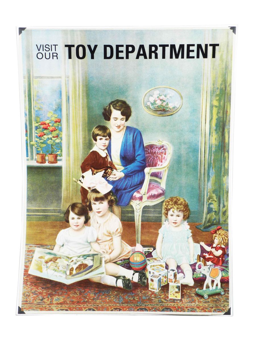 Stock Advertising Paper Poster entitled, "Visit our Toy Department". Excellent condition. 15 X 20 inches.