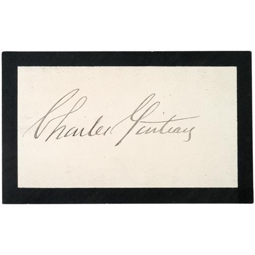 <Our item number 140870><B>[Garfield, James A.] Charles Guiteau.</B> (1841-1882) American lawyer and assassin of President Garfield. Personal visiting card signed ("Charles Guiteau"), 2¾ x 3¾ in., n.p, n.d. On blank card stock with black mourning border. <BR>Estimated Value $350 - 450. <BR><BR>Our item number 140870<BR><IMAGES><P ALIGN="CENTER"><IMG SRC="http://www.goldbergcoins.net/liveauction/49jpegs/140870.jpg"> </P></IMAGES>