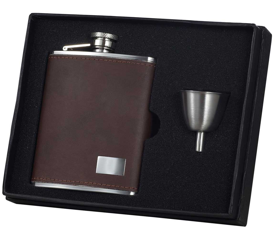 Visol Hunter Dark Brown Leather 6oz Flask Gift Set **|**|** Visol Hunter Dark Brown Leather 6oz Flask Gift Set