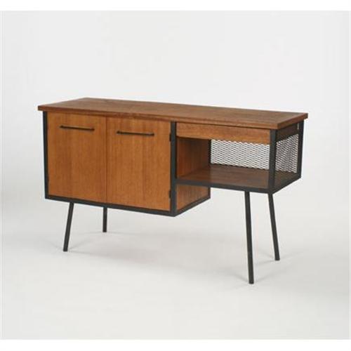Buffet features two doors concealing one adjustable shelf.<BR><BR>Condition: Overall fine condition with small old indentations to edges. Missing one pin to door.