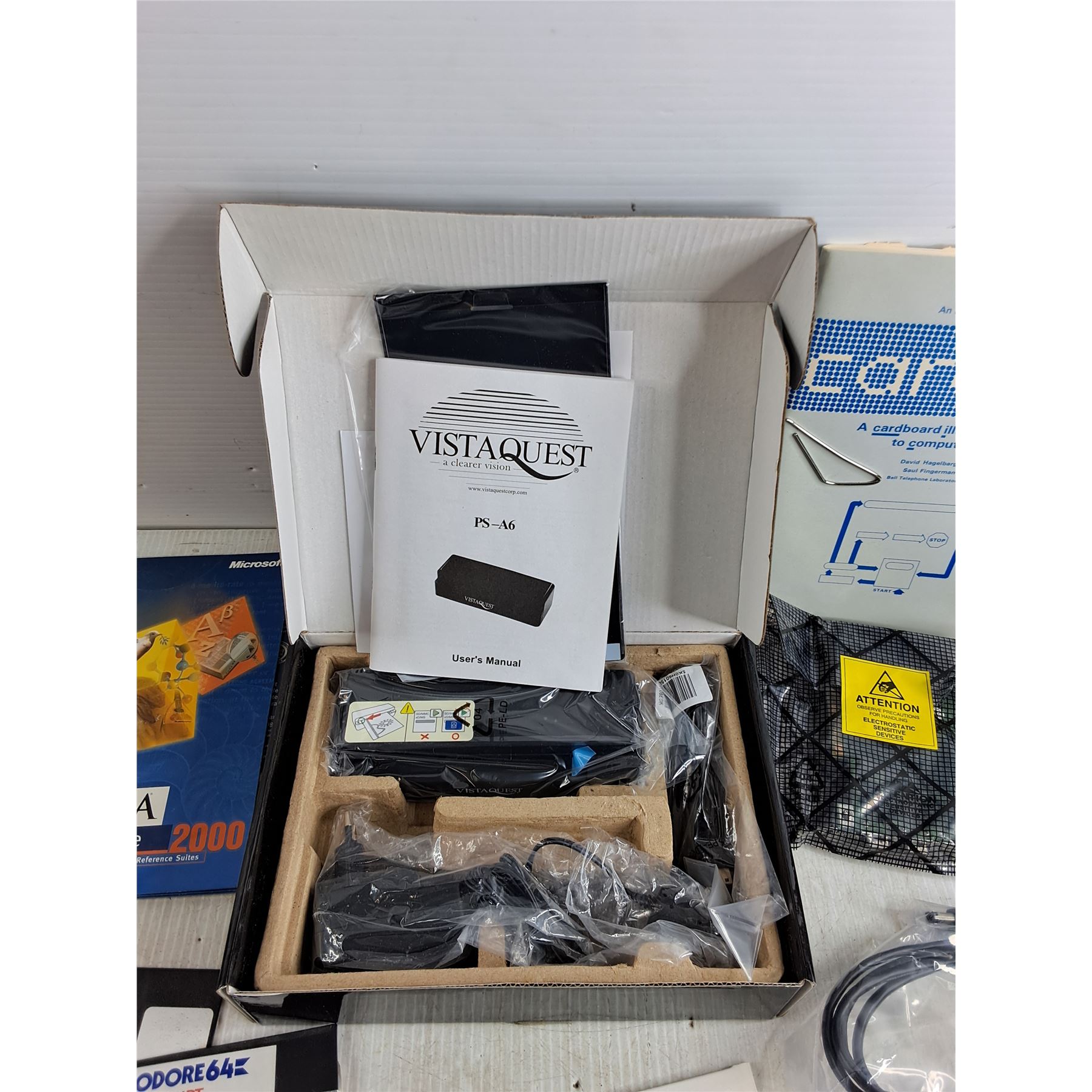 VistaQuest Photo Scanner, PCB, Commodore 64 Easyscript, Cord, Microsoft Guides