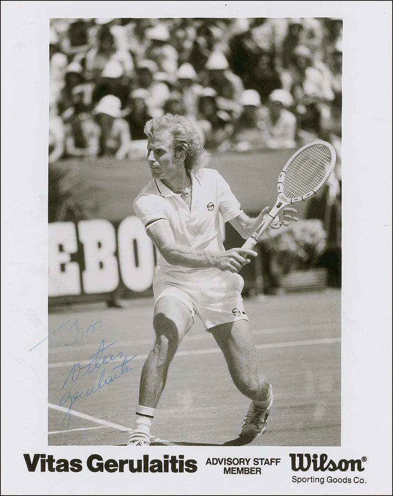 Glossy 8 x 10 Wilson publicity photo, signed and inscribed in blue ballpoint “To Jim, Vitas Gerulaitis.” In fine condition.