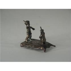 Ezüst, 30 g. Medvét táncoltató gyermek figurája. Talapzata sérült. Német, XIX. sz. vége