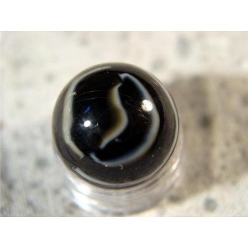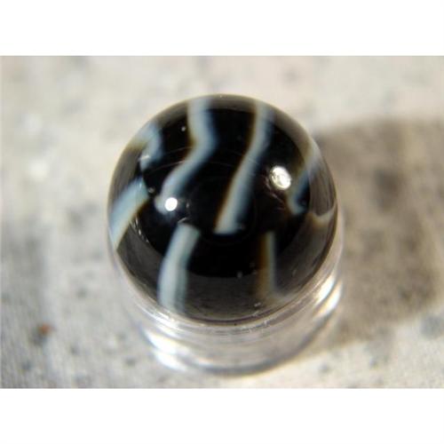 #1083 Vitro Black 8-Finger Ribbon 9.9<BR><BR><b>VITRO AGATE COMPANY, Ribbon.</b> One of the very hard to find eight-ribbon Vitros. Opaque black base with eight white ribbons (or fingers). Parkersburg WV, age unknown. 19/32". Mint (9.9).