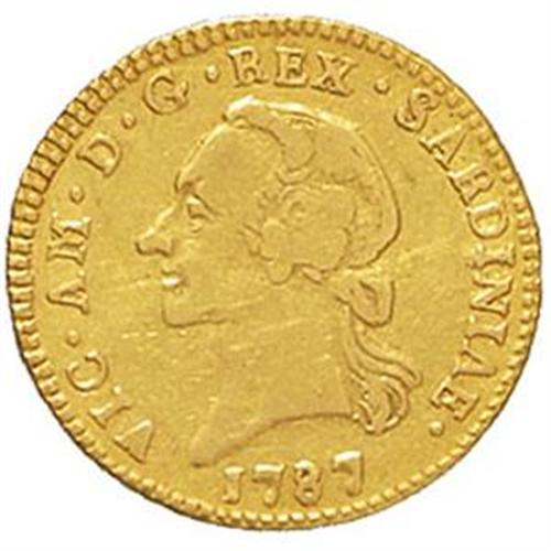 Casa Savoia - Regno di Sardegna - Regno di Italia. Regno di Sardegna. Vittorio Amedeo III (1773-1796). Mezza doppia 1787. Mont.317. R. AU. qBB/BB.