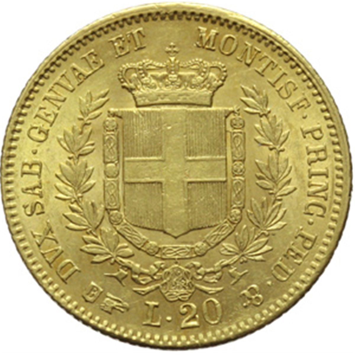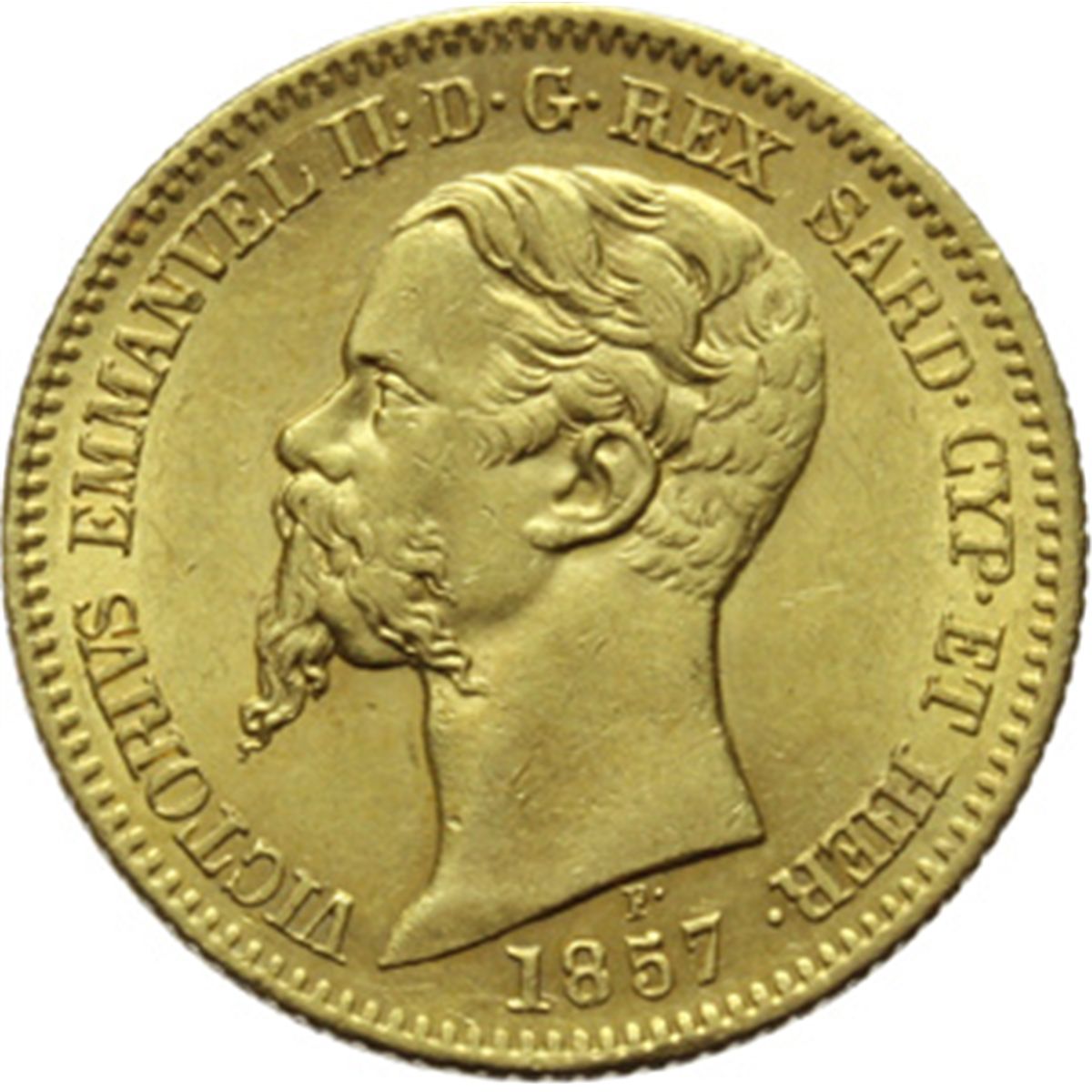 Casa Savoia - Regno di Sardegna - Regno di Italia. Regno di Sardegna. Vittorio Emanuele II (1849-1861). 20 lire 1857 T. Pag. 351. Mont. 17. AU. qFDC.