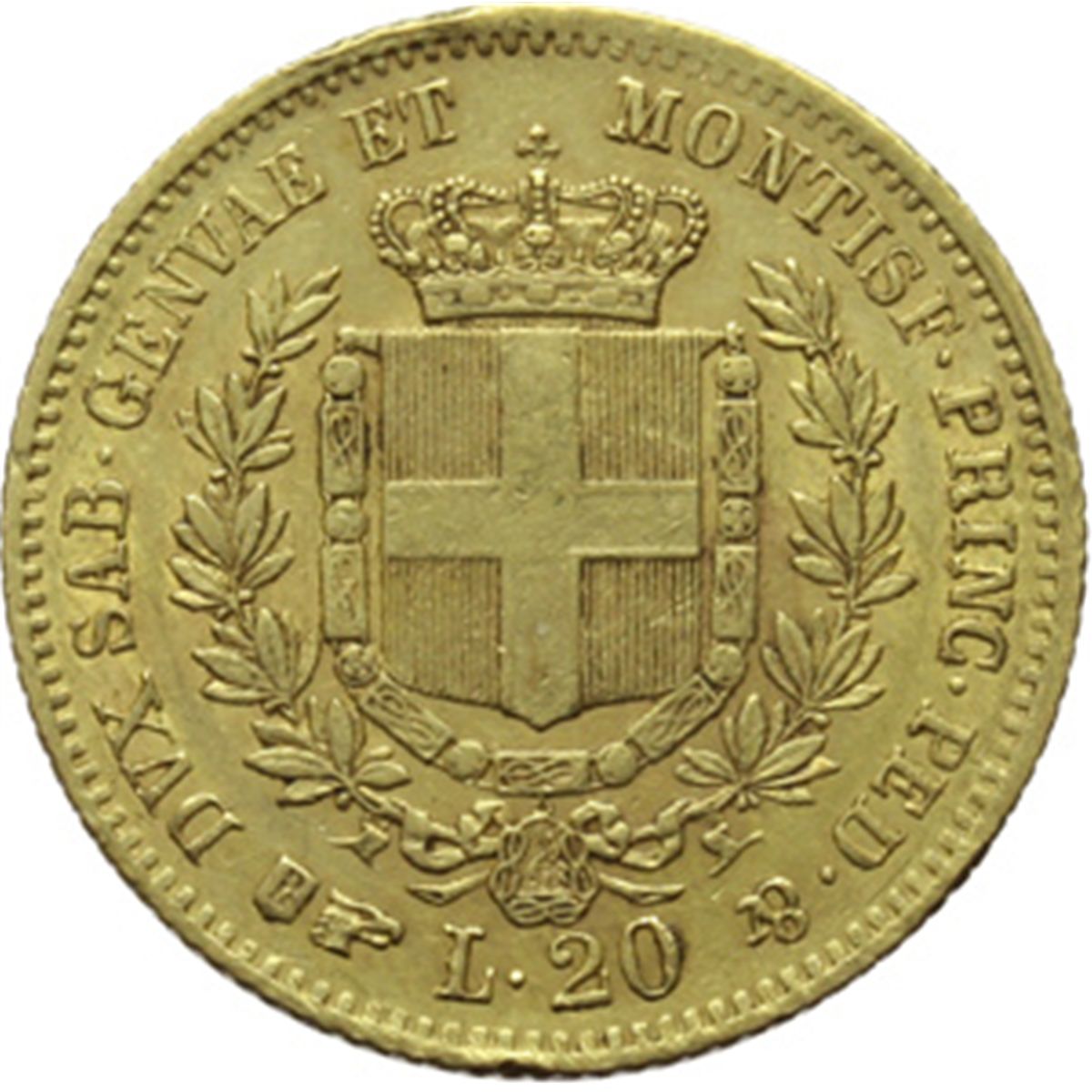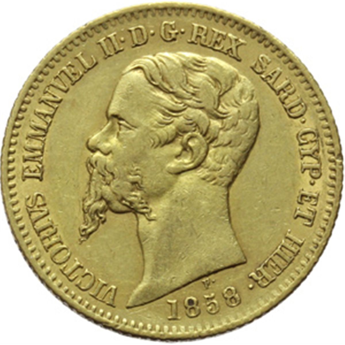 Casa Savoia - Regno di Sardegna - Regno di Italia. Regno di Sardegna. Vittorio Emanuele II (1849-1861). 20 lire 1858, T. Pag. 353. Mont. 20. AU. RR. Bel BB+.