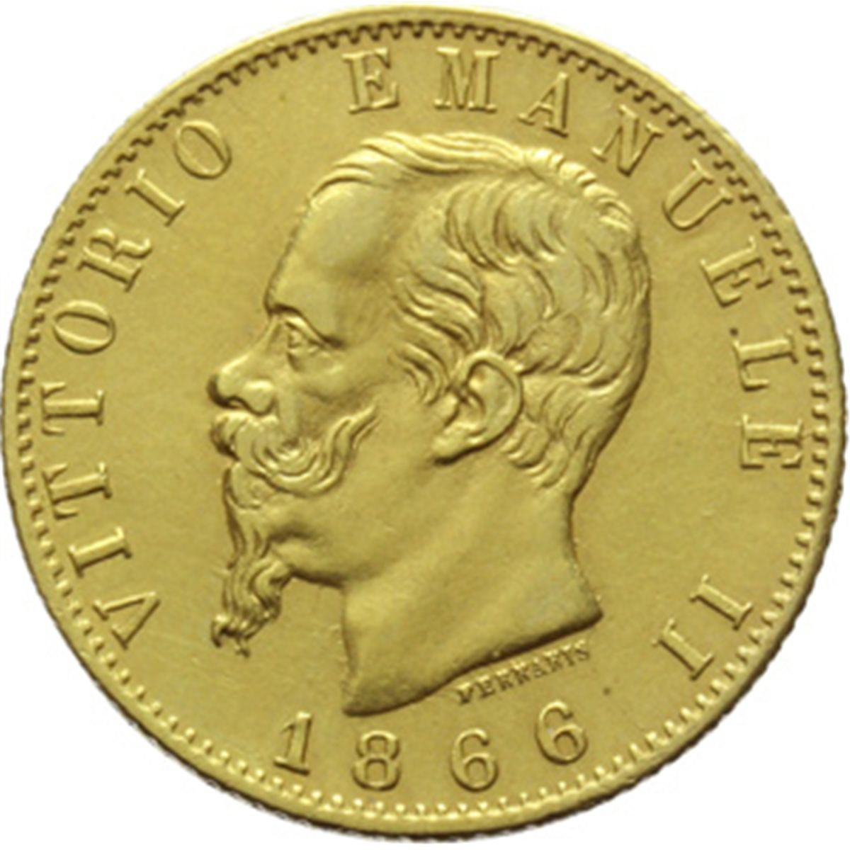 Casa Savoia - Regno di Sardegna - Regno di Italia. Regno di Italia. Vittorio Emanuele II (1861-1878). 20 lire 1866 T. Pag. 460. Mont.136. AU. R. BB+.