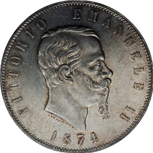 Vittorio Emanuele II silver 5-Lire 1874-M BN, KM-8.3, C