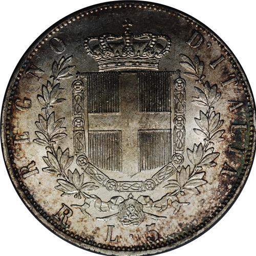 Vittorio Emanuele II silver 5-Lire 1876-R, KM-8.4, Choi