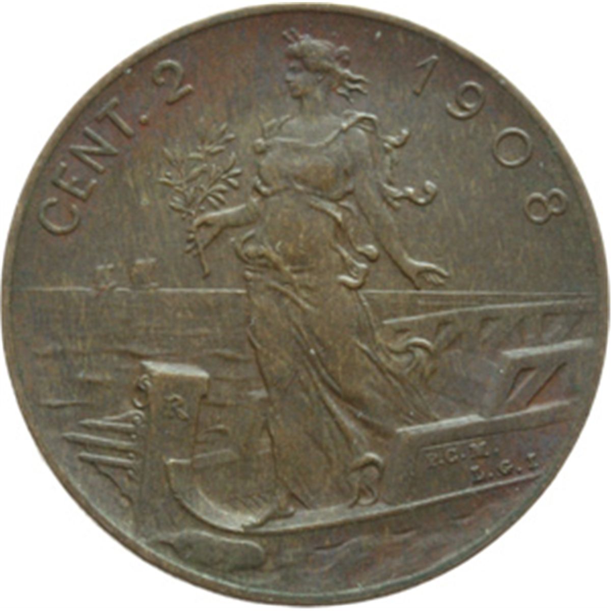 Casa Savoia - Regno di Sardegna - Regno di Italia. Regno di Italia. Vittorio Emanuele III (1900-1943). 2 centesimi 1908, prora. Pag. 931. Mont. 404. CU. RR. BB+.
