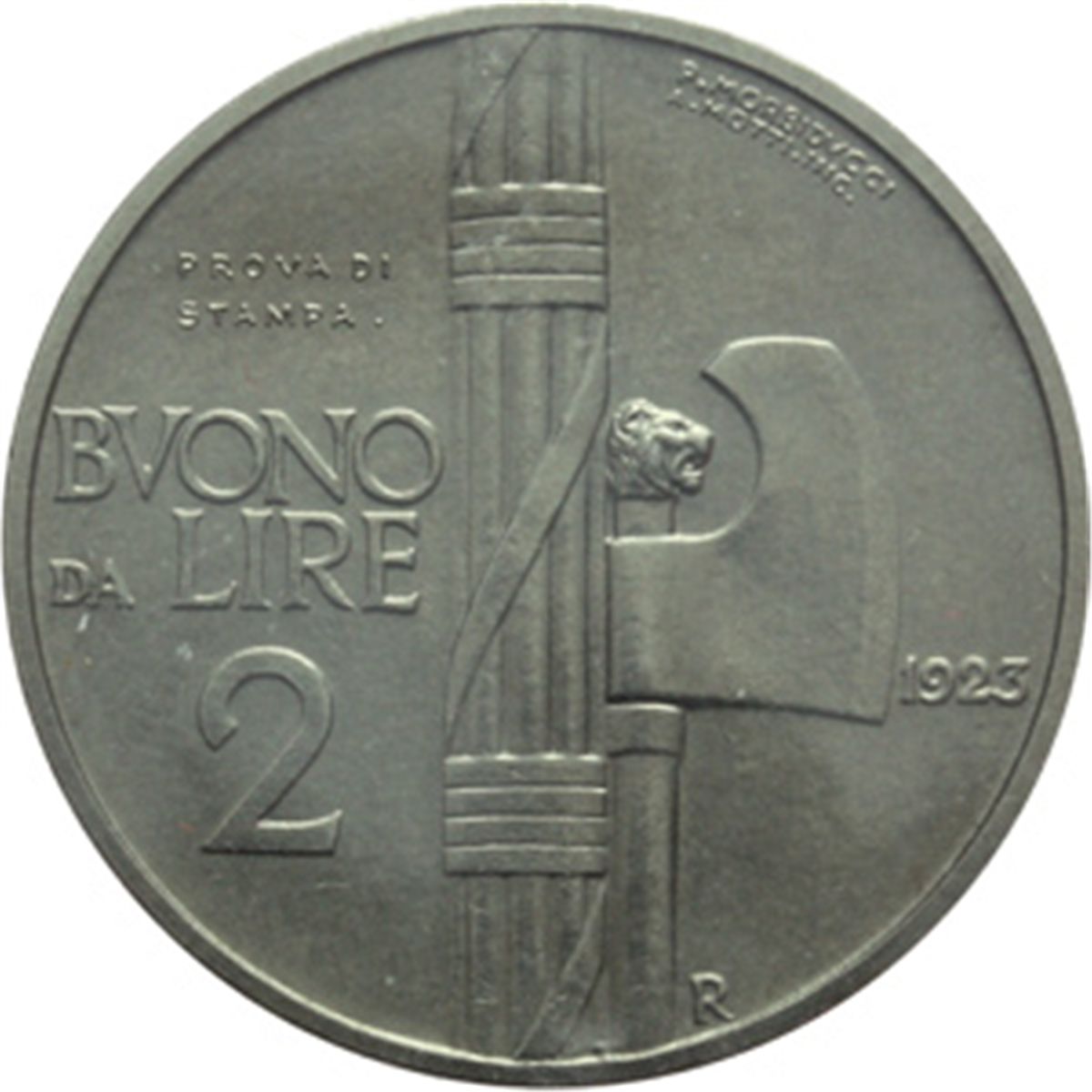 Casa Savoia - Regno di Sardegna - Regno di Italia. Regno di Italia. Vittorio Emanuele III (1900-1943). 2 lire 1923, Prova di Stampa. P.P. 251. Mont. Prove 291. NI. RR. FDC. Sigillata Nomisma.