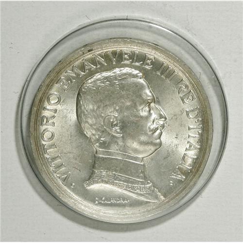 <B>Vittorio Emanuele III pair of silver 2-Lire coins:</B></I> 1915-R and 1917-R, KM-55, both Choice UNC, brilliant, one with pale gold toning.<BR><BR><b>Shipping:</b> Coin/Currency (<a target="_blank" href="http://www.heritageauctions.com/common/shipping.php">view shipping information</a>)