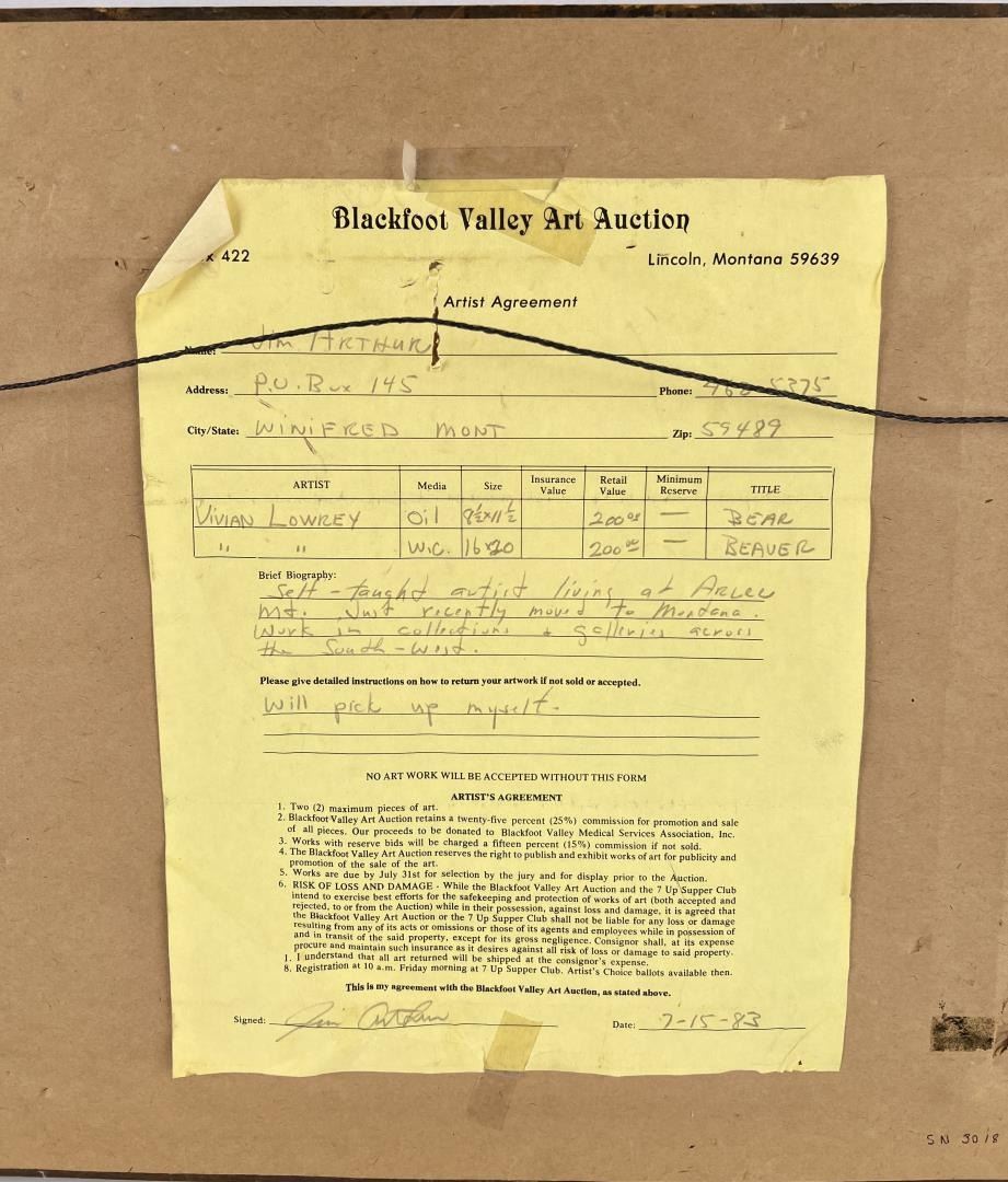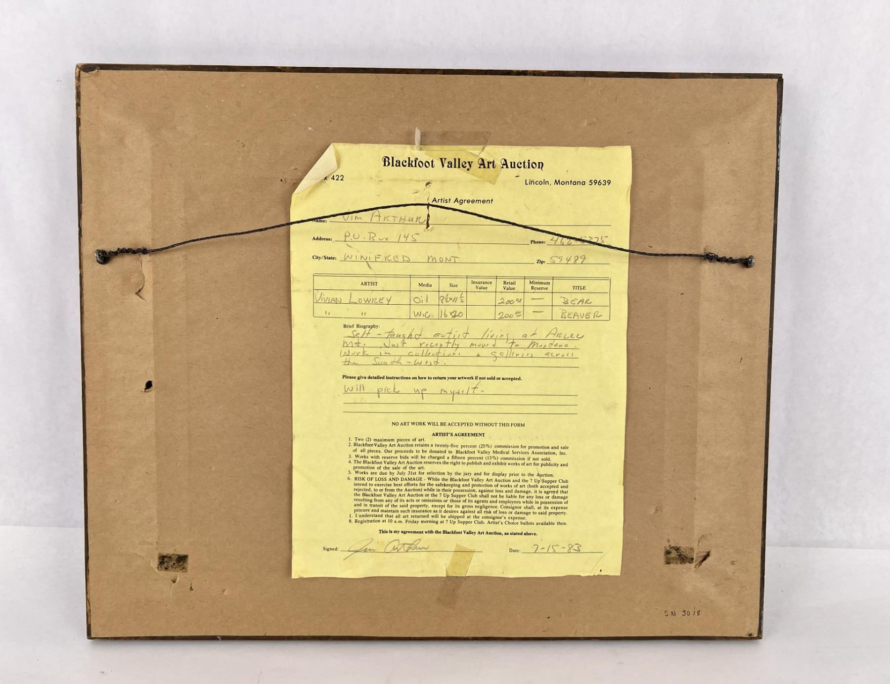 8 1/2" by 11 1/2". 15" by 17 5/8" framed. Vivian Lowrey is known for Painting. Vivian Lowrey lived in Montana on the Flathead Reservation and was locally known as "the painter lady". The sale of her works is actually quite rare as collectors and admirers of her work hold onto the pieces and pass them down through generations.