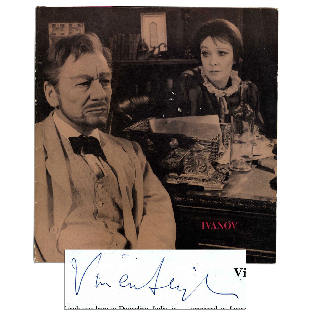 Vivien Leigh signed program for the 1966 production of Chekhov's ''Ivanov'' at New York's Shubert Theatre. Leigh, best known for her Oscar-winning role as Scarlett O'Hara in ''Gone With the Wind,'' signs ''Vivien Leigh'' below the photo on the page with her biography. Co-star Jennifer Hilary also signs the 10'' x 10.5'' twenty page program. Very good.