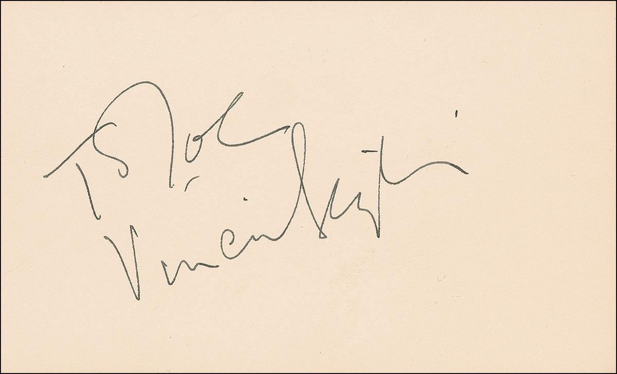 Vintage in-person ink signature and inscription, “To Joe, Vivien Leigh,” on an off-white 5 x 3 card. In fine condition.