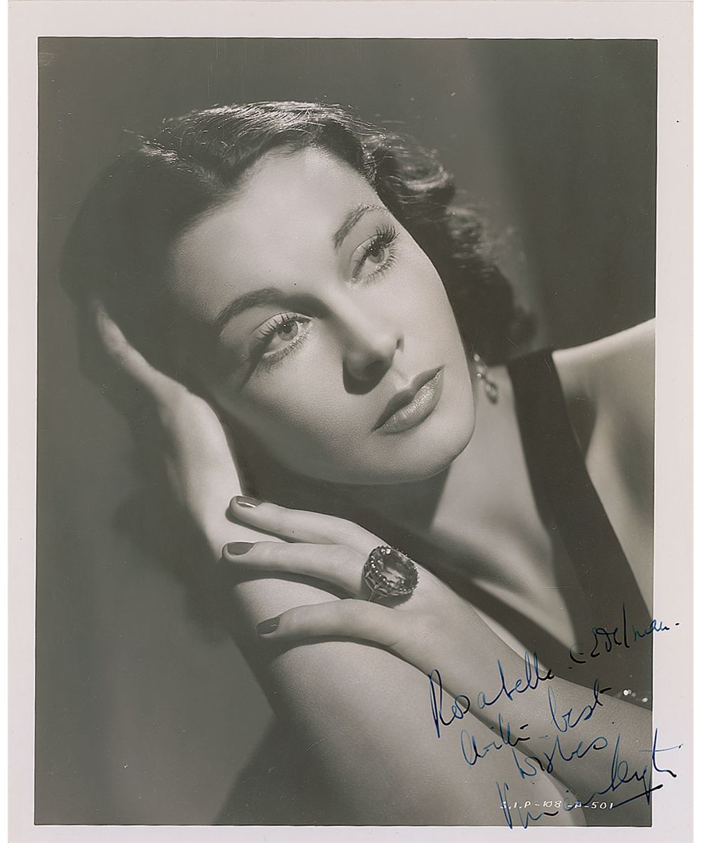 Positively gorgeous vintage glossy 8 x 10 photo of Leigh wearing a large ring and softly cradling her head against her hand, signed and inscribed in fountain pen, “Rosabelle Edelman, With best wishes, Vivien Leigh.” The image can be linked to Gone With the Wind based upon the production code in the lower corner, “SIP-108.” In fine to very fine condition. Signed Gone With the Wind publicity stills are among the most sought after Hollywood collectibles, and this most exquisite example is in truly remarkable condition for its age.