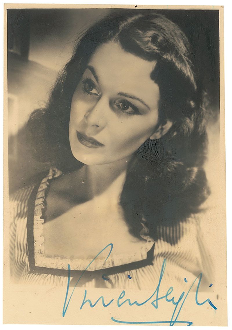 Gorgeous vintage matte-finish 3.25 x 4.75 portrait of Leigh, signed in fountain pen. In fine condition.