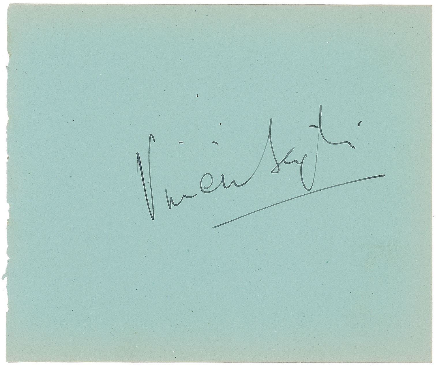 Lovely fountain pen signature, "Vivien Leigh,” on a light green 6.25 x 5.25 album page. In fine condition.