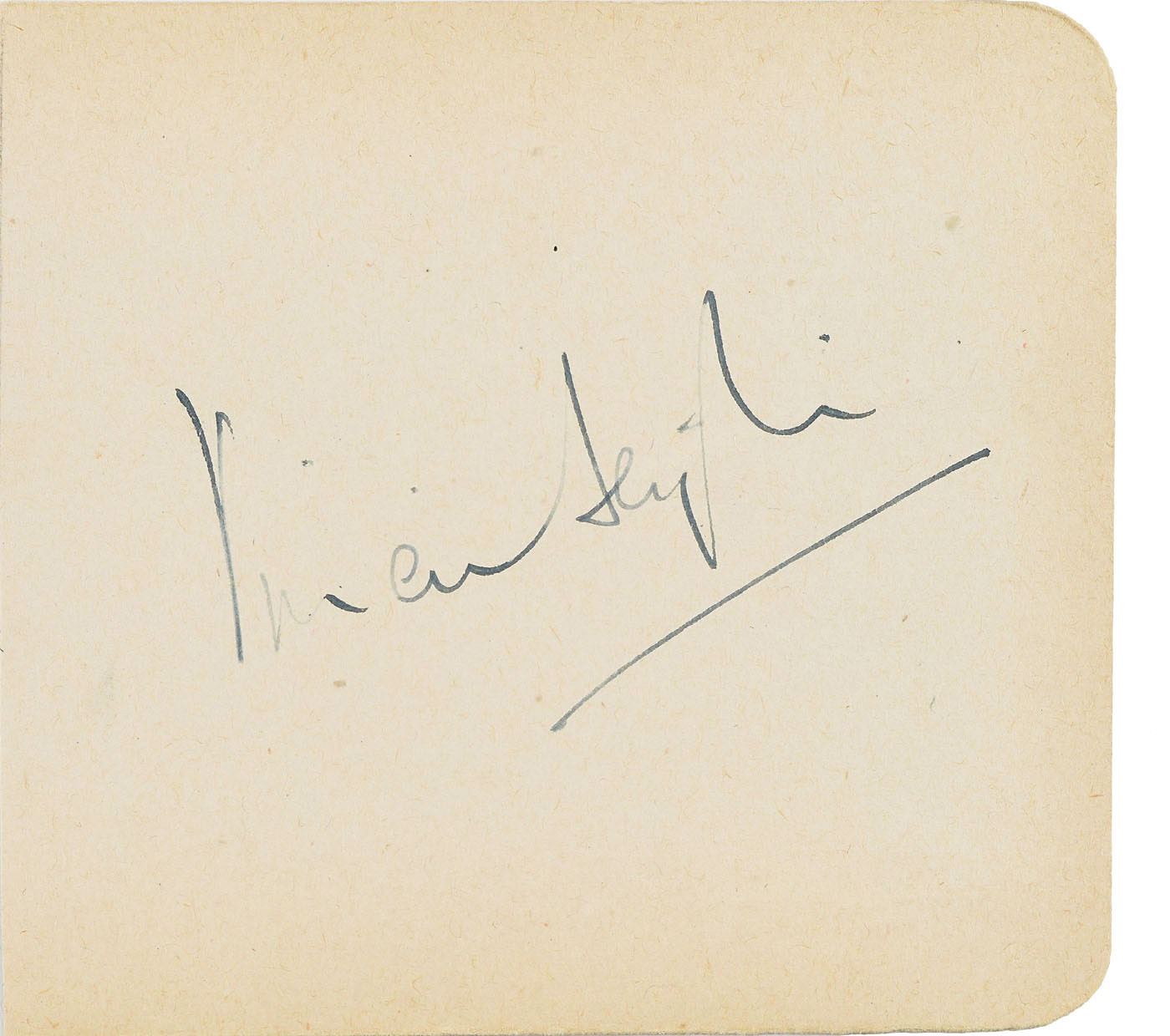 Beautiful vintage fountain pen signature, "Vivien Leigh,” on an off-white 4 x 4 album page. In fine condition.