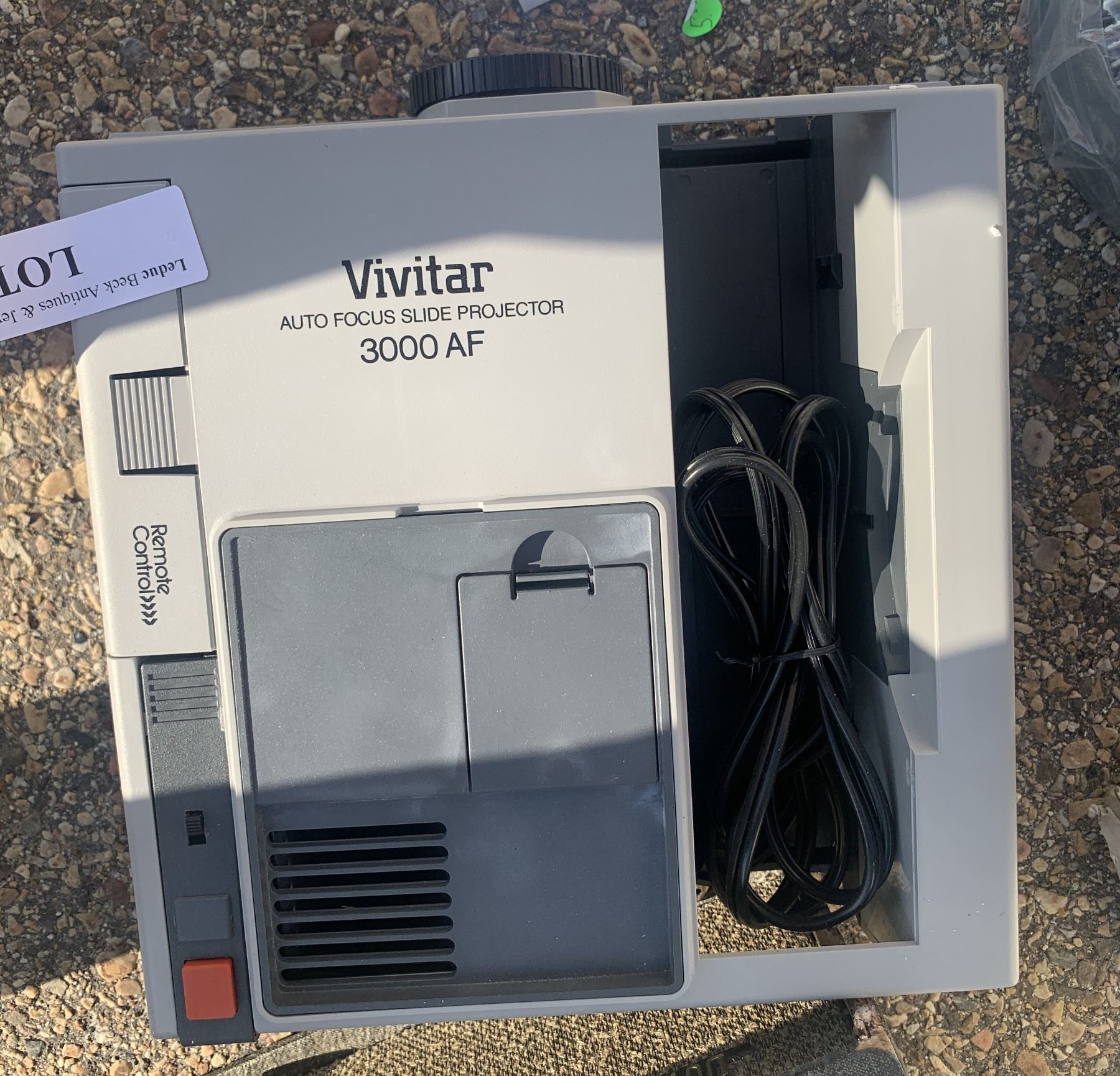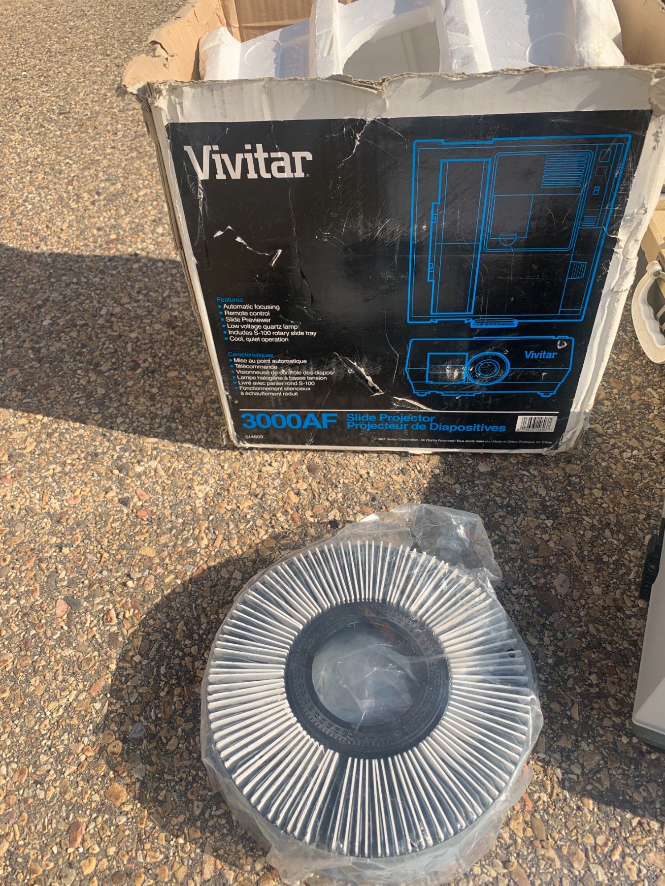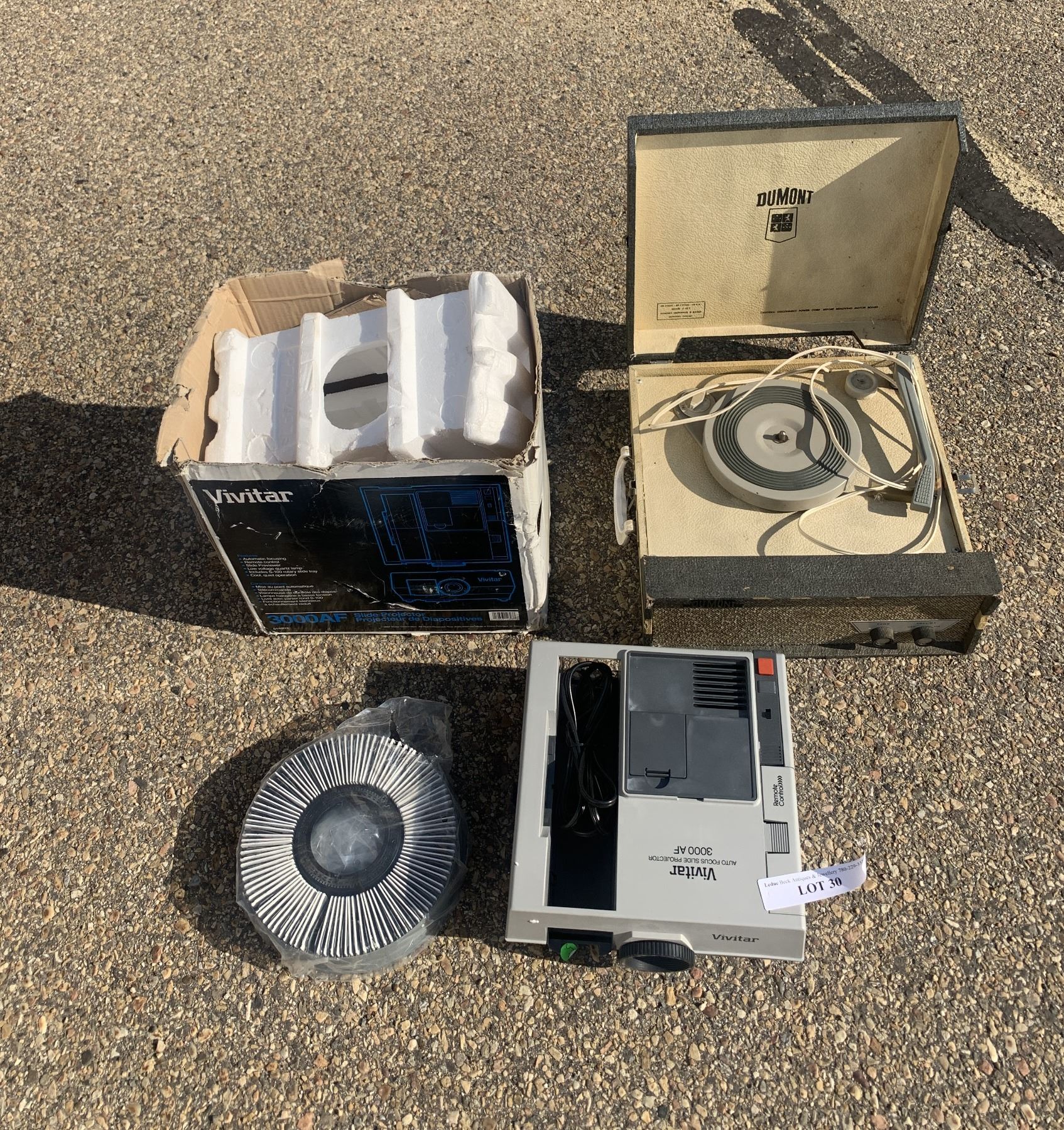Vivitar Auto Focus Slide Projector, Slides, Tray & Vintage Dumont Record Player