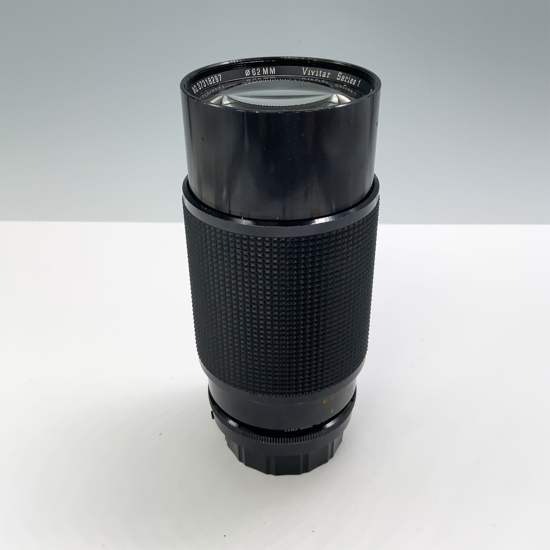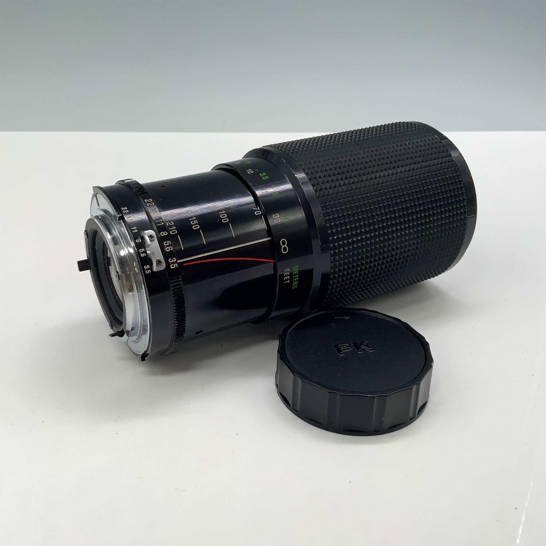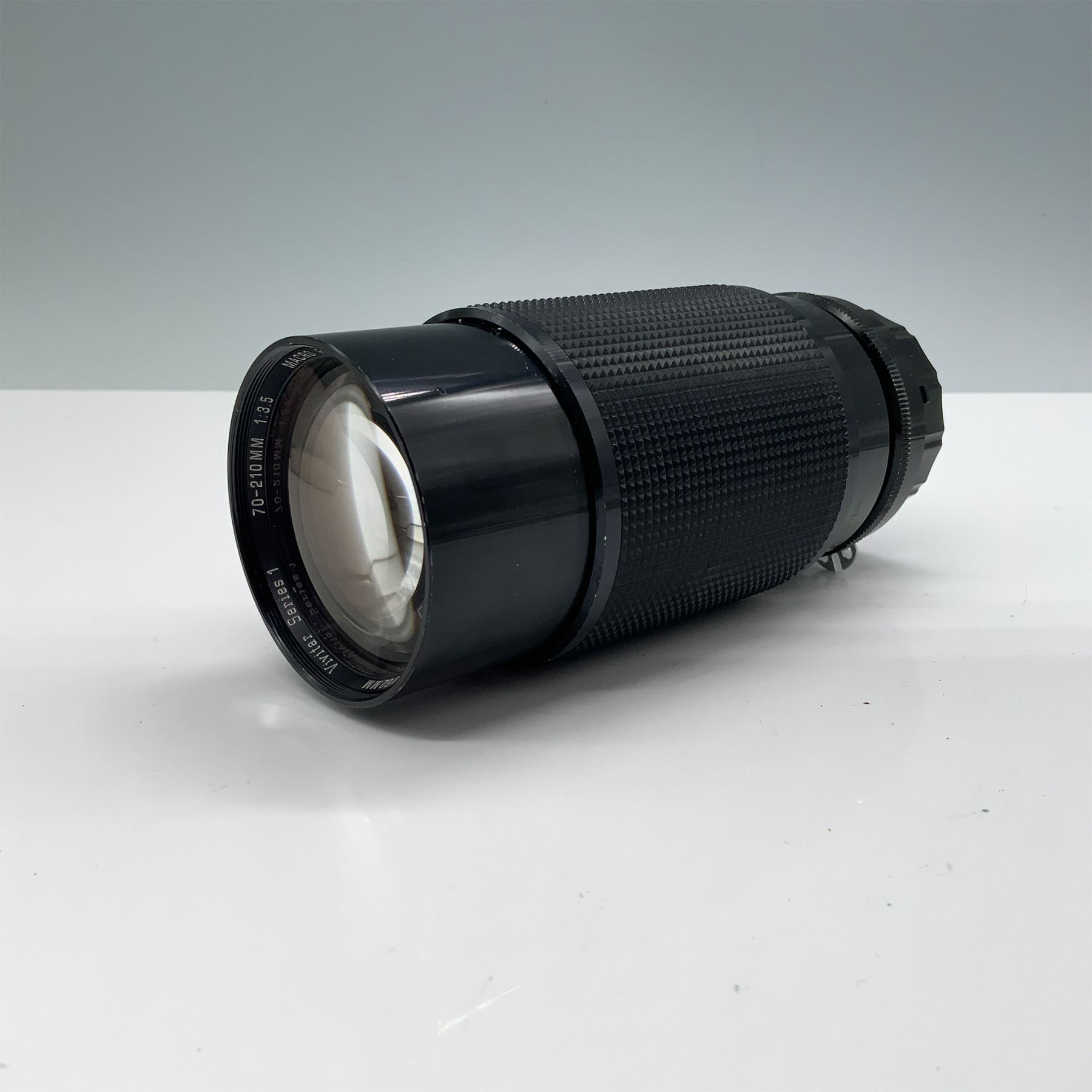 Vivitar Series 1 70-210mm f/3.5 macro focusing zoom lens, renowned for its superior optics and manual focus capabilities, with a PK mount. Measures 9.5"H when fully extended. Includes one lens cap for added protection. This lens is designed for vintage film cameras but can adapt to modern cameras with appropriate mounts. The Series 1 line is celebrated for its robust build and sharp image quality, making it a collector's favorite.
