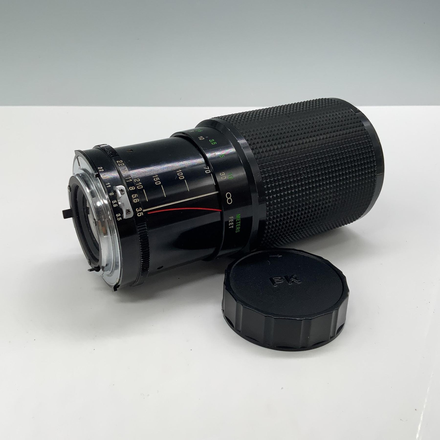 Vivitar Series 1 70-210mm f/3.5 macro focusing zoom lens, renowned for its superior optics and manual focus capabilities, with a PK mount. Measures 9.5"H when fully extended. Includes one lens cap for added protection. This lens is designed for vintage film cameras but can adapt to modern cameras with appropriate mounts. The Series 1 line is celebrated for its robust build and sharp image quality, making it a collector's favorite. Can be usable with modern cameras with adaptor. Mount type : Pentax K-Mount