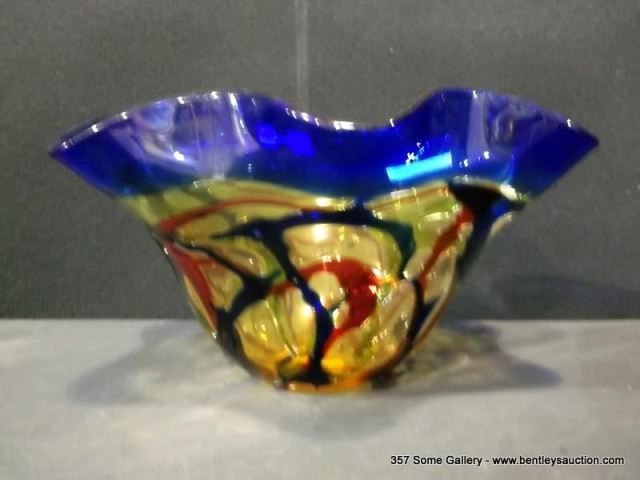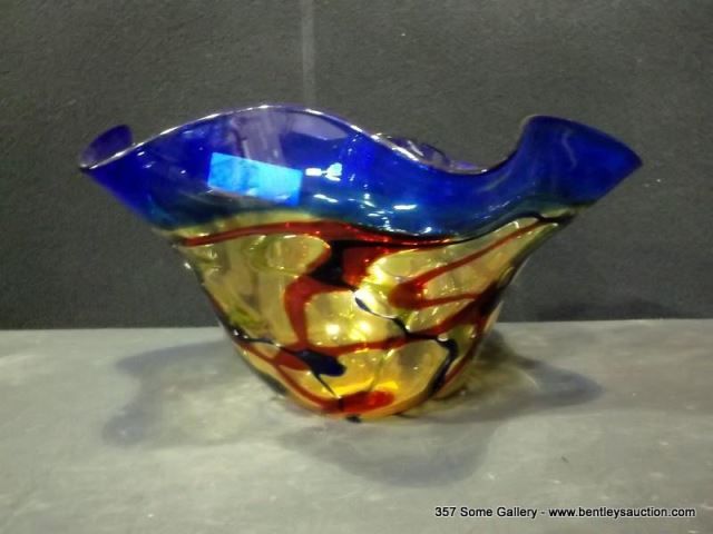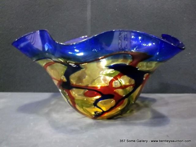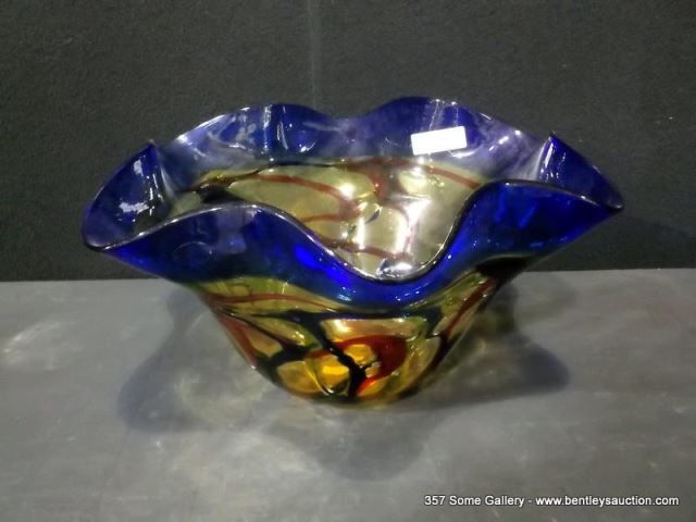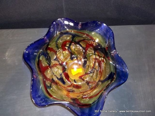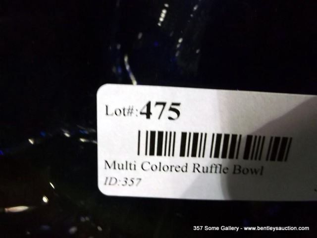 Viz Glass Art Multi Colored Ruffle Bowl, 11" x 21" Retail: $1120.00