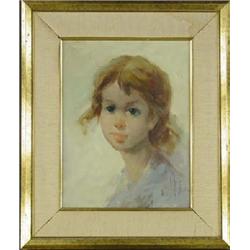 Vladan Stiha (1908-1992) (New Mexico) Oil on Canvas, Portrait - Young Girl, 14" x 10.5", signed lower right, Est $800 - $1,200