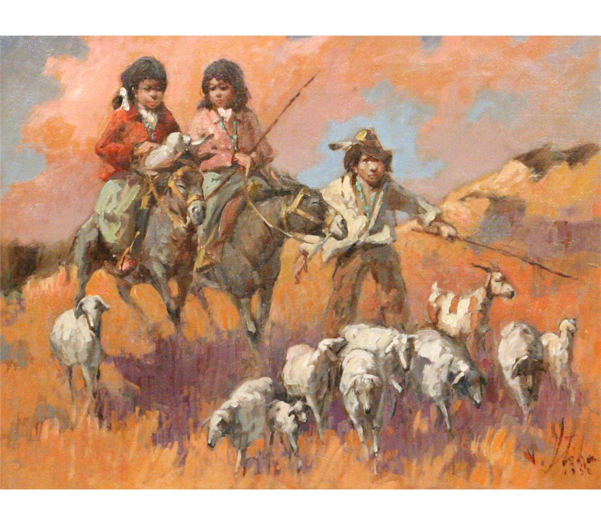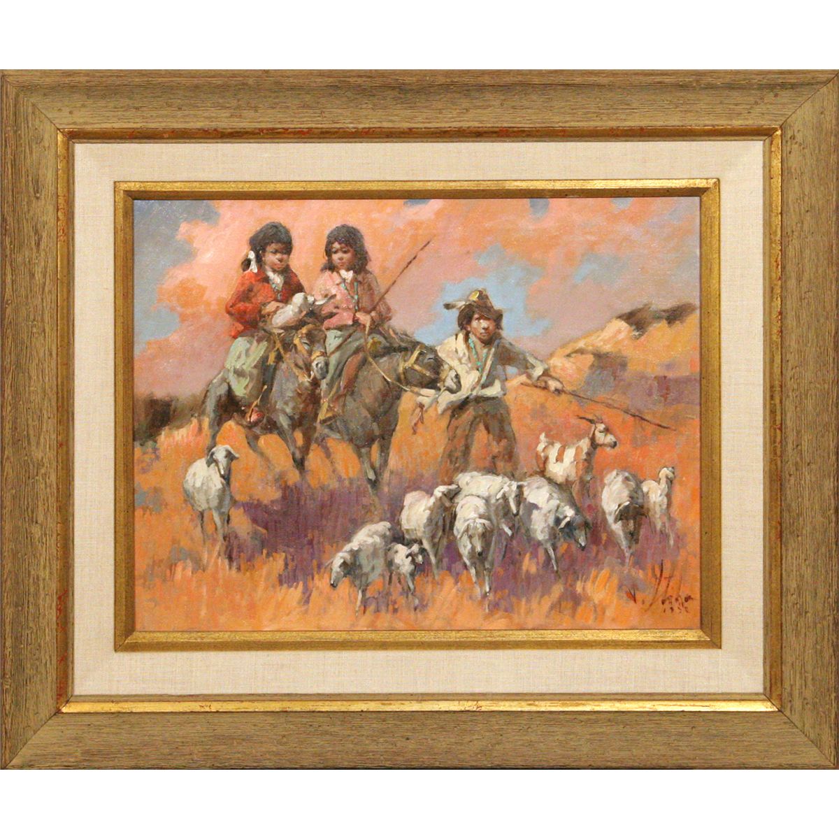Vladan Stiha (1908 - 1992). Shepherd Boy. 14" x 18" oil on canvas. Signed lower right: V. Stiha 1972.