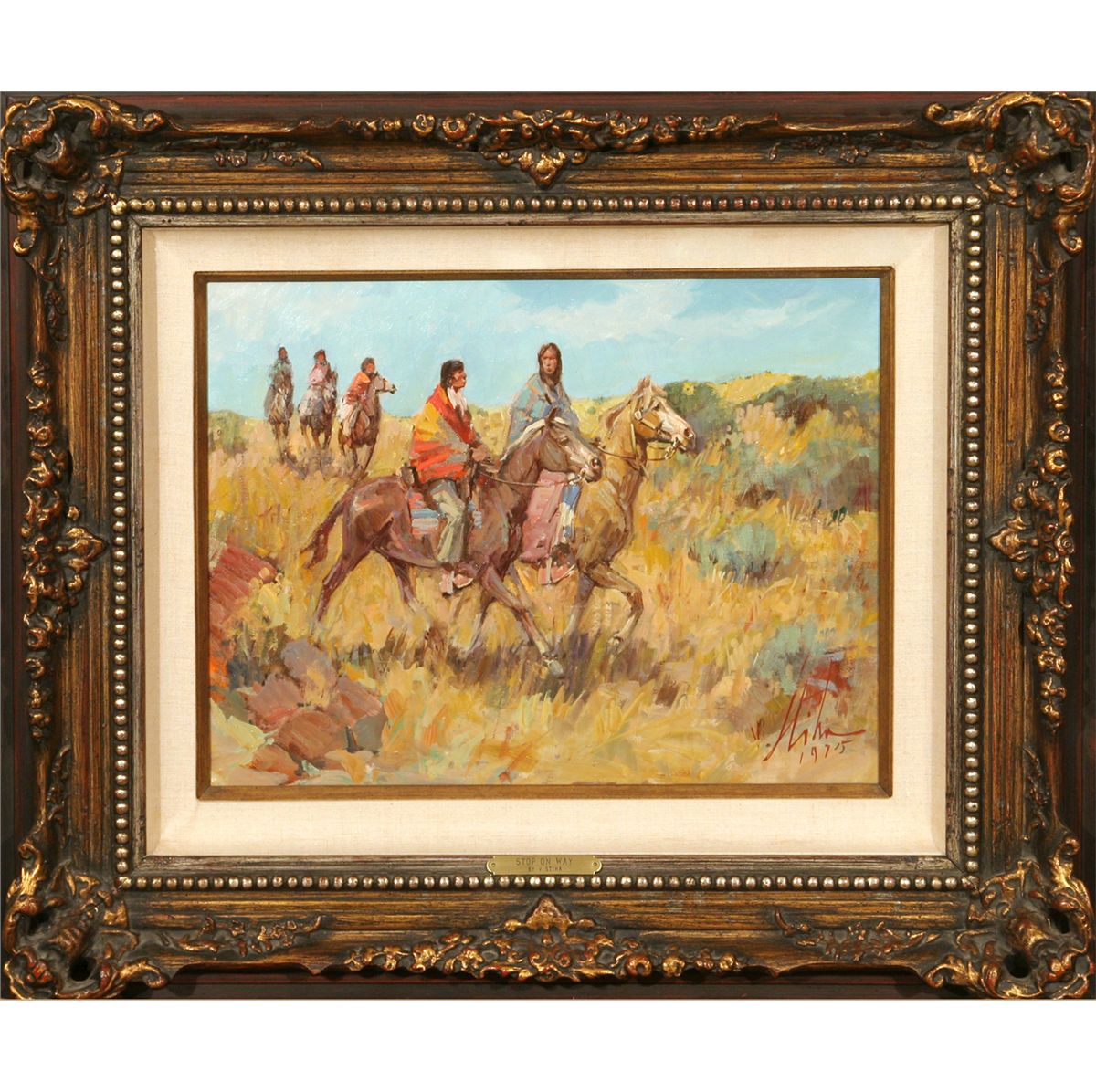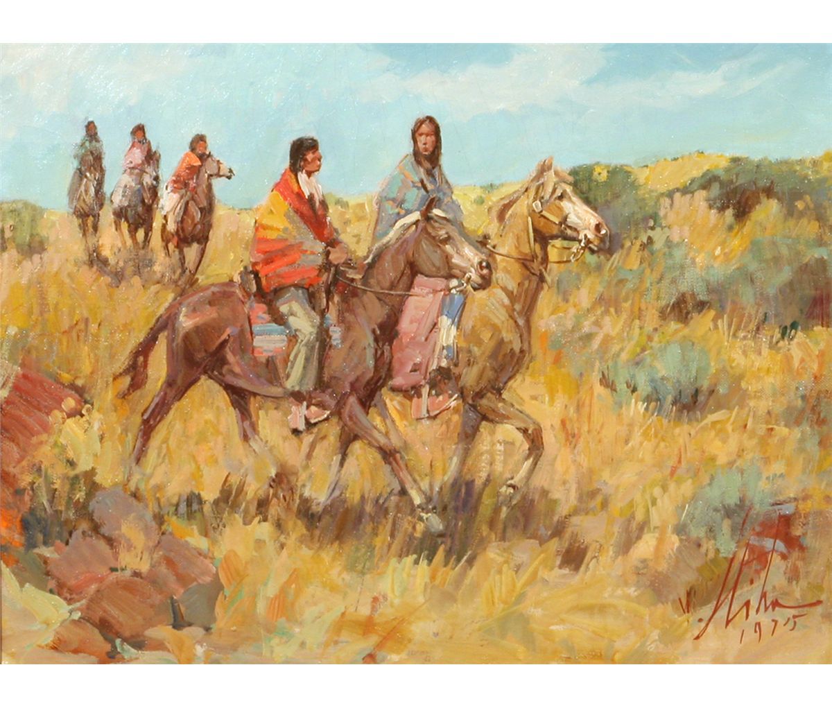 Vladan Stiha (1908 - 1992). Stop On Way. 14" x 18" oil on canvas. Signed lower right: V. Stiha 1975.