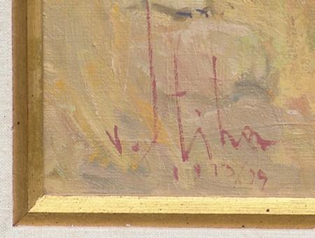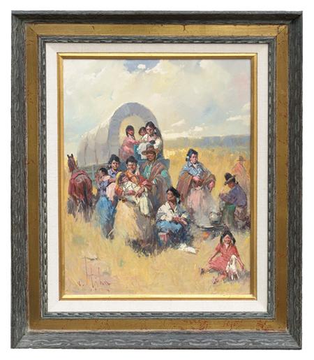 Circa 1973, Signed original oil on canvas "Navajo Stop." 24" x 18" (33" x 27") From the Millican Collection.