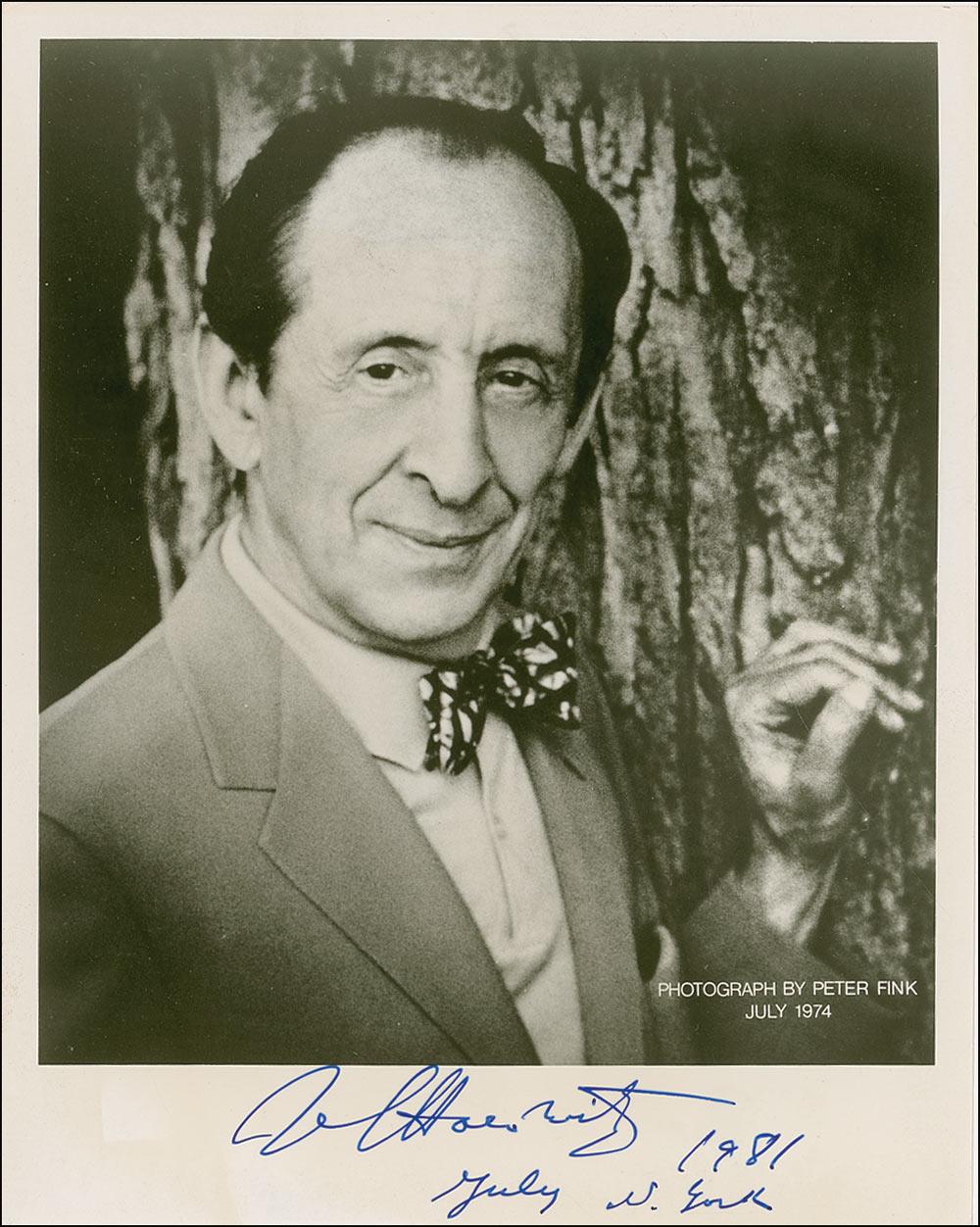 Cardstock 8 x 10 photo, signed in the lower border in blue felt tip, and dated “N. York, July 1981.” Some scattered creases to edges, as well as some scattered light toning to bottom border, otherwise fine condition.