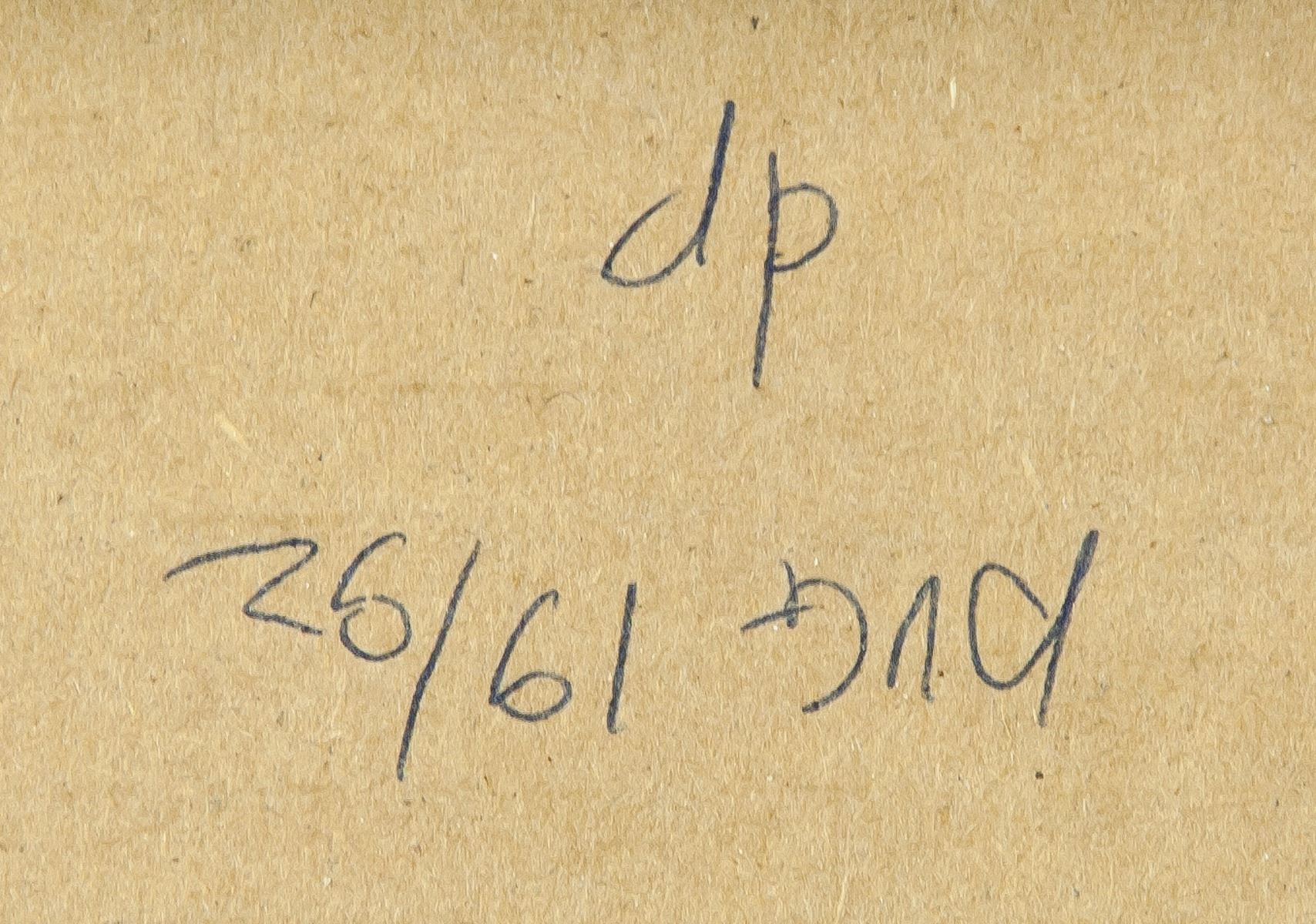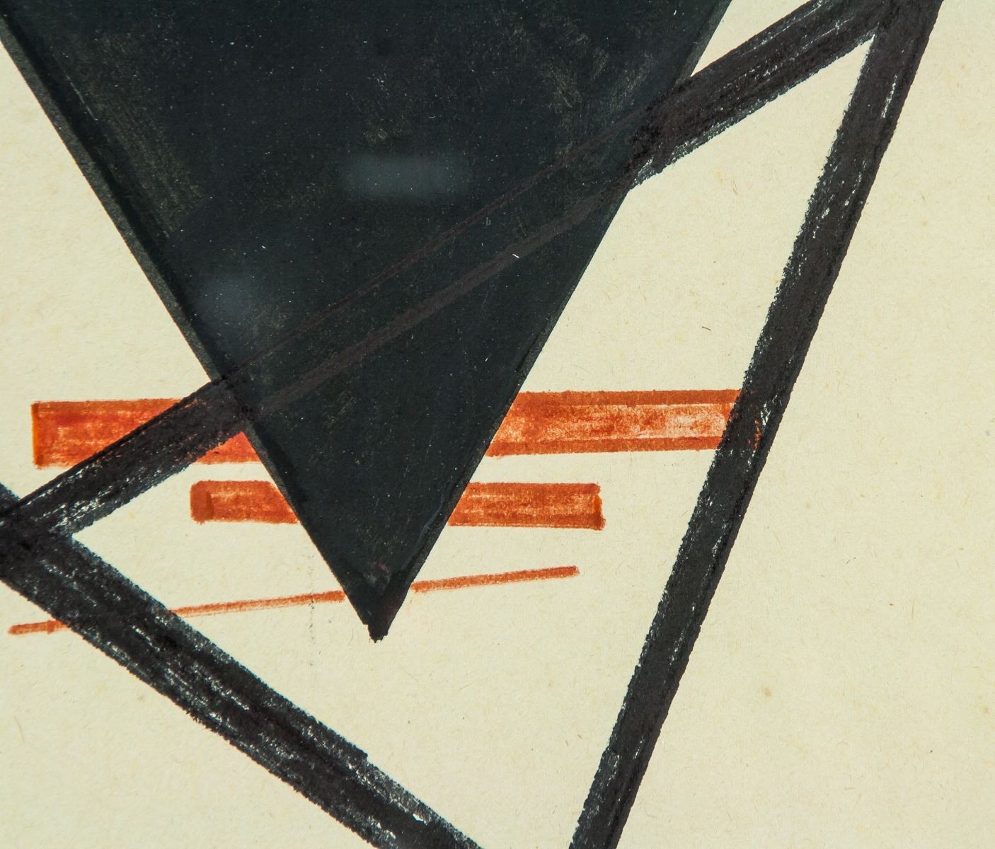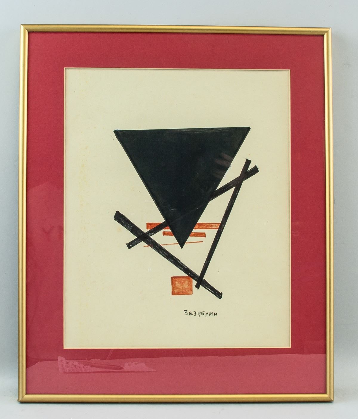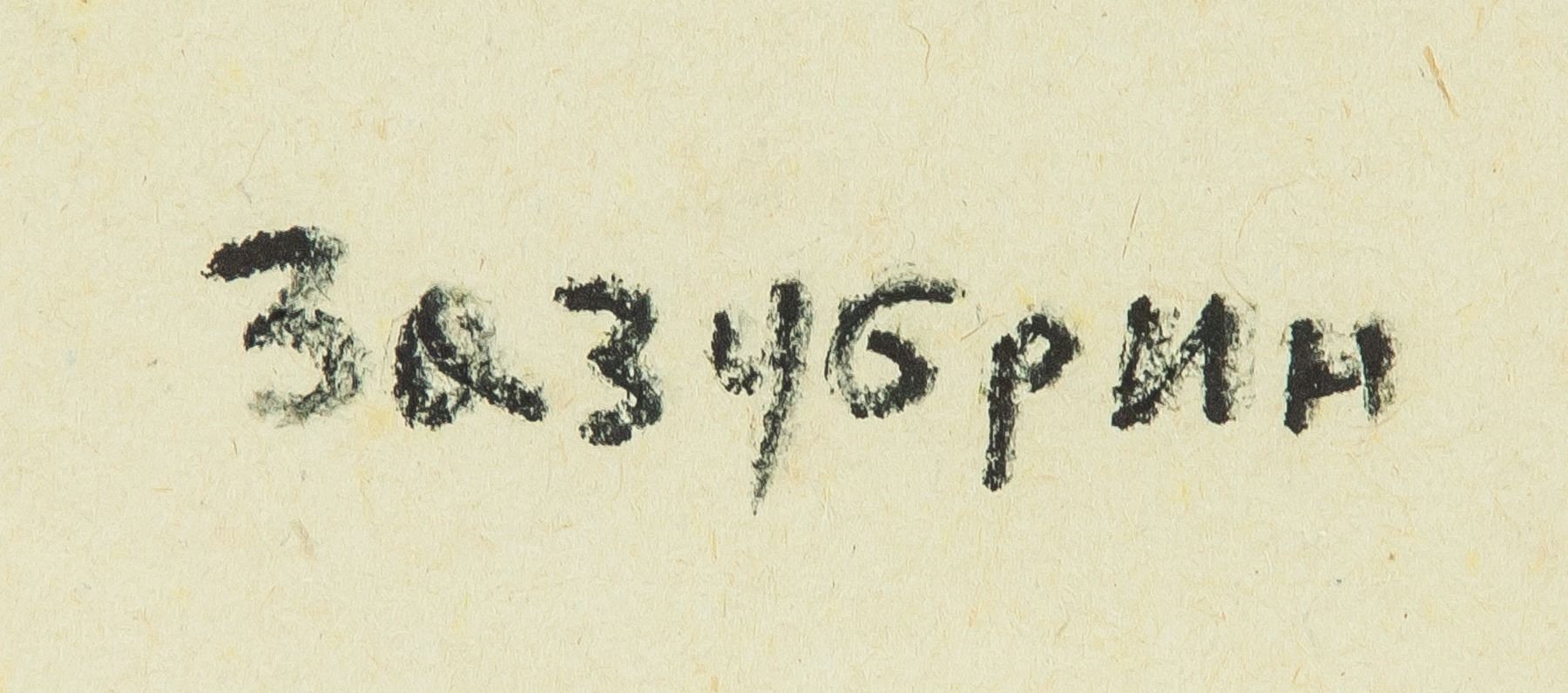 Mixed media on paper, framed. Featuring an abstract composition. Signed on the lower edge. Attributed to Vladimir Zazubrin (1895-1937, Russian). 33 x 27 cm (13.0 x 10.6 inches). Frame size: 45 x 37.5 cm (17.7 x 14.8 inches). PROVENANCE: This lot carries limited provenance from a Southern Ontario estate