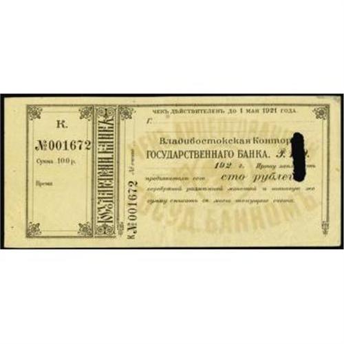 <style type="text/css"> body, td, th { font-family: Arial, Helvetica, sans-serif; font-size: 12px; color: #482424; margin: 0px; padding: 0px; } #header { background-image: url(http://www.bowersandmerena.com/ebay/images/template_v3_01.gif); clear: both; background-color: #590303; border-top-width: 2px; border-top-style: solid; border-top-color: #B38C4F; } #header #header_wrapper { height: 75px; clear: both; width: 800px; margin-right: auto; margin-left: auto; background-image: url(http://www.bowersandmerena.com/ebay/images/template_v3_03.gif); background-repeat: no-repeat; background-position: right; color: #F3EDCC; } #header #header_wrapper #header_logo { float: left; height: 75px; width: 444px; background-image: url(http://www.bowersandmerena.com/ebay/images/template_v3_02.gif); background-repeat: no-repeat; font-size: 10px; text-transform: capitalize; color: #B38C4F; } #header #header_wrapper #header_right { float: left; height: 75px; width: 356px; text-align: right; } #header #header_wrapper #header_right #headerLoginBtn { margin-bottom: 30px; } #header #header_wrapper #header_right input#txtSearch { color: #B49056; border: 1px solid #B49056; width: 175px; padding-top: 3px; padding-right: 3px; padding-bottom: 4px; padding-left: 3px; } #nav { height: 37px; background-image: url(http://www.bowersandmerena.com/ebay/images/template_v3_05.gif); clear: both; } #nav #nav_wrapper { height: 35px; width: 800px; margin-right: auto; margin-left: auto; border-left-width: 1px; border-left-style: solid; border-left-color: #B38C4F; } #nav #nav_wrapper a { padding-right: 15px; padding-left: 15px; border-right-width: 1px; border-right-style: solid; border-right-color: #B38C4F; height: 25px; padding-top: 10px; display: block; float: left; text-decoration: none; font-weight: bold; color: #5D0303; } #nav #nav_wrapper a:hover { color: #B38C4F; } #nav #nav_wrapper #search { float: right; padding-top: 7px; } #nav #nav_wrapper #search #txtSearch { font-family: Arial, Helvetica, sans-serif; font-size: 10px; text-transform: uppercase; color: #D2AE75; border: 1px solid #B38C4F; padding: 3px; } #content_bgd { background-image: url(http://www.bowersandmerena.com/ebay/images/template_v3_09.gif); background-repeat: repeat-y; background-position: center; padding-top: 15px; padding-bottom: 15px; background-color: #FBFBDB; } #content_wrapper { clear: both; height: auto; width: 800px; margin-right: auto; margin-left: auto; } .LotDetailWhite { line-height:normal; font-size:13px; font-family: arial,helvetica,sans-serif; color: White; font-weight: bold; } .LotDetailInformation { line-height:normal; font-size: 13px; font-family: arial,helvetica,sans-serif; } .LotDetailMessage { line-height:normal; font-size: 13px; font-family: arial,helvetica,sans-serif; color: red; } } tr.HeaderAuctionTitle td { color: #000000; font-weight: bold; padding: 2px; background-image: url(http://www.bowersandmerena.com/ebay/images/template_v3_05.gif); background-repeat: repeat-x; border-bottom-width: 1px; border-bottom-style: solid; border-bottom-color: #B38C4F; } table.AuctionSummary a, table.AuctionSummary a:link, table.AuctionSummary a:visited { color: #0000FF; text-decoration: none; } } td.tableHeaderLeft { border-left-width: 1px; border-left-style: solid; border-left-color: #B38C4F; } td.tableHeaderRight { border-right-width: 1px; border-right-style: solid; border-right-color: #B38C4F; } td.tableCellMiddle { border-left-width: 1px; border-left-style: solid; border-left-color: #B38C4F; border-right-width: 1px; border-right-style: solid; border-right-color: #B38C4F; padding: 5px; } tr.footer td { border-top-width: 1px; border-top-style: solid; border-top-color: #B38C4F; } </style> </head> <body> <div id="header"> <div id="header_wrapper"> <div id="header_logo"> </div> <div id="header_right"> </div> </div> </div> <div id="nav"> <div id="nav_wrapper"> <a href="http://www.bowersandmerena.com">Our eBayLive Auctions</a> <a href="#PaymentInfo">Payment Information</a> <a href="#ShippingInfo">Shipping Information</a> <a href="#About">About Bowers and Merena</a> </div> </div> <div id="content_bgd"> <div id="content_wrapper"> <table width="100%" border="0" cellpadding="5" cellspacing="0" class="AuctionSummary"> <tbody> <tr class="HeaderAuctionTitle" style="height: 25px;"> <td align="left" class="tableHeaderLeft" > </td> <td align="center" class="tableHeaderRight"> <span style="font-size: large;">Lot #2302. East Siberia. Vladivostok Office Government Bank, 192X Issue (Never Issued).</span> </td> </tr> <tr> <td colspan="3" class="tableCellMiddle"> Vladivistok, 192X, 100 Rublei, P-S1255C. Light brown paper. AU condition.