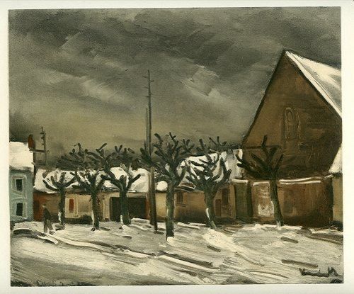 Vlaminck Lithograph "Lime Trees Under Snow" - Lithograph. This Lithograph Was Pulled In Paris In 1958 By The Legendary Mourlot Atelier, And Published By Andre Sauret. A Nice Impression, As Can Be Expected Of Mourlot. Size: 12 1/4 X 9 1/2 Inches- Professionally Framed & Matted - Comes With Certificate - -