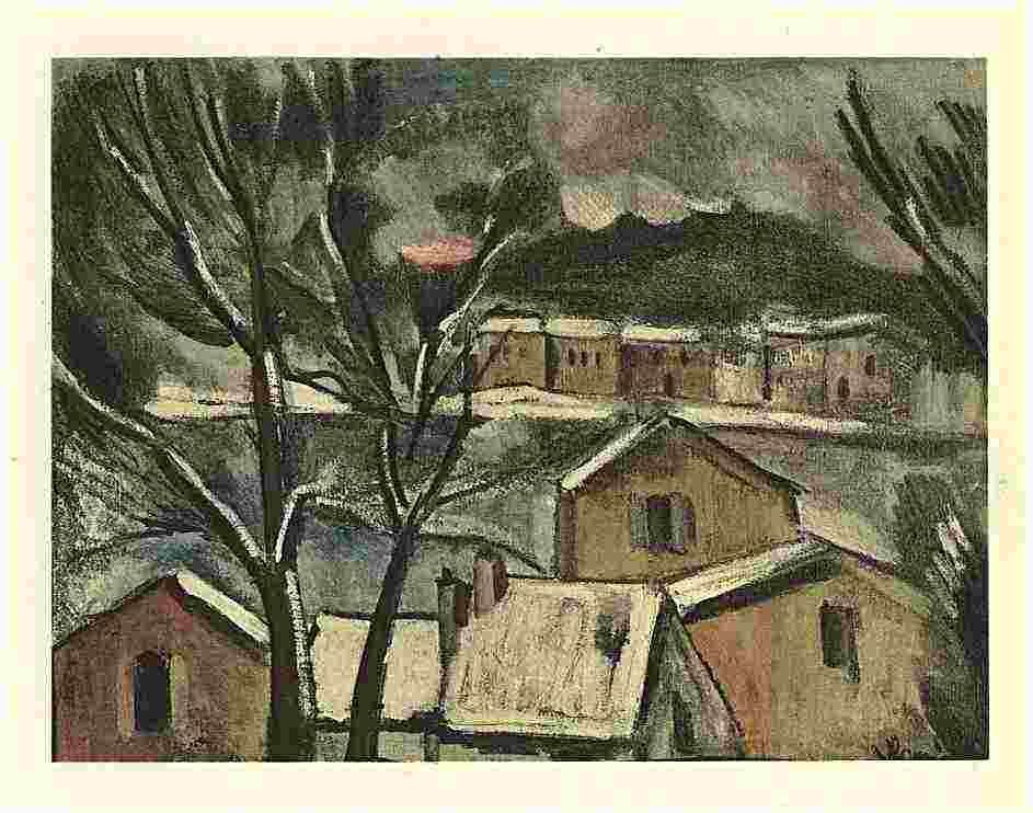 Vlaminck Lithograph "Winter Landscape" - Lithograph. This Lithograph Was Pulled In Paris In 1958 By The Legendary Mourlot Atelier, And Published By Andre Sauret. A Nice Impression, As Can Be Expected Of Mourlot. Size: 12 1/4 X 9 1/2 Inches- Professionally Framed & Matted - Comes With Certificate - -