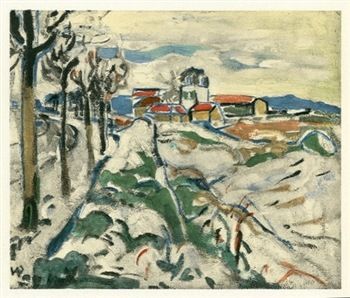 Vlaminck Original Lithograph "Hills At Chatou" - This Lithograph Was Pulled In Paris In 1958 By The Legendary Mourlot Atelier, And Published By Andre Sauret - Limited Edition Of 2000 - A Nice Impression -As Can Be Expected Of Mourlot - Size: 12 1/4 X 9 1/2 Inches- Professionally Framed & Matted - Comes With Certificate - -