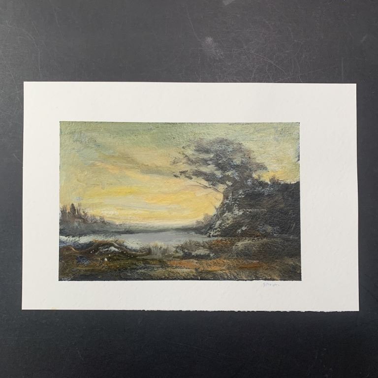 Vlad Grospic, Untitled, Original on paper. A cliffside scene with a tree, blowing in the wind. This piece is in excellent condition.