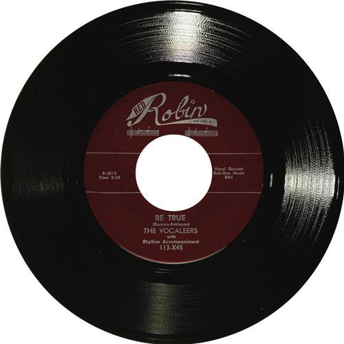 <B>Vocaleers "Be True"/ "Oh! Where" 45 Red Robin 3018 (1953).</B></I> Early '50s R&B group on a very desirable label, and this copy's slick! Condition: NM 8.