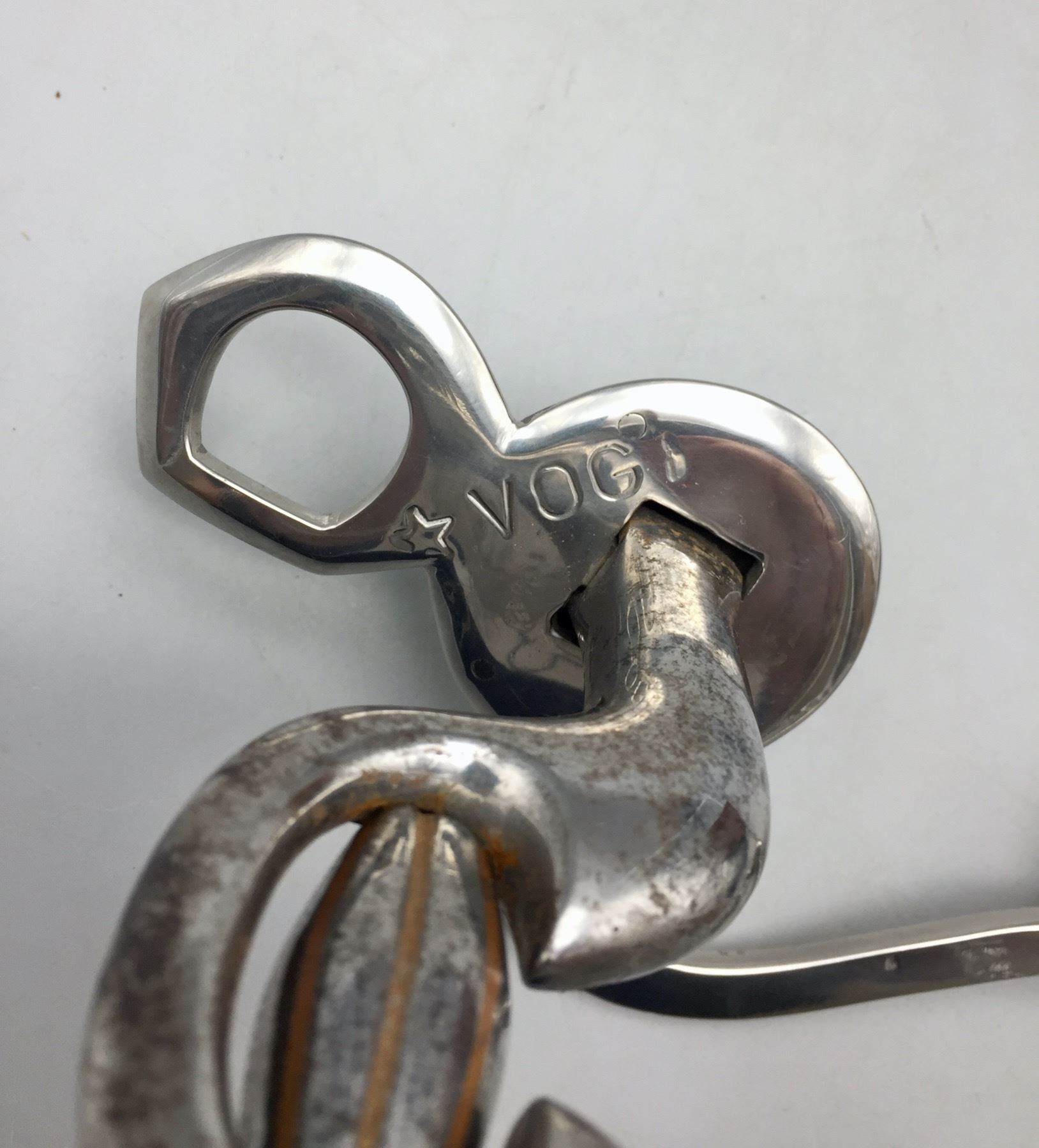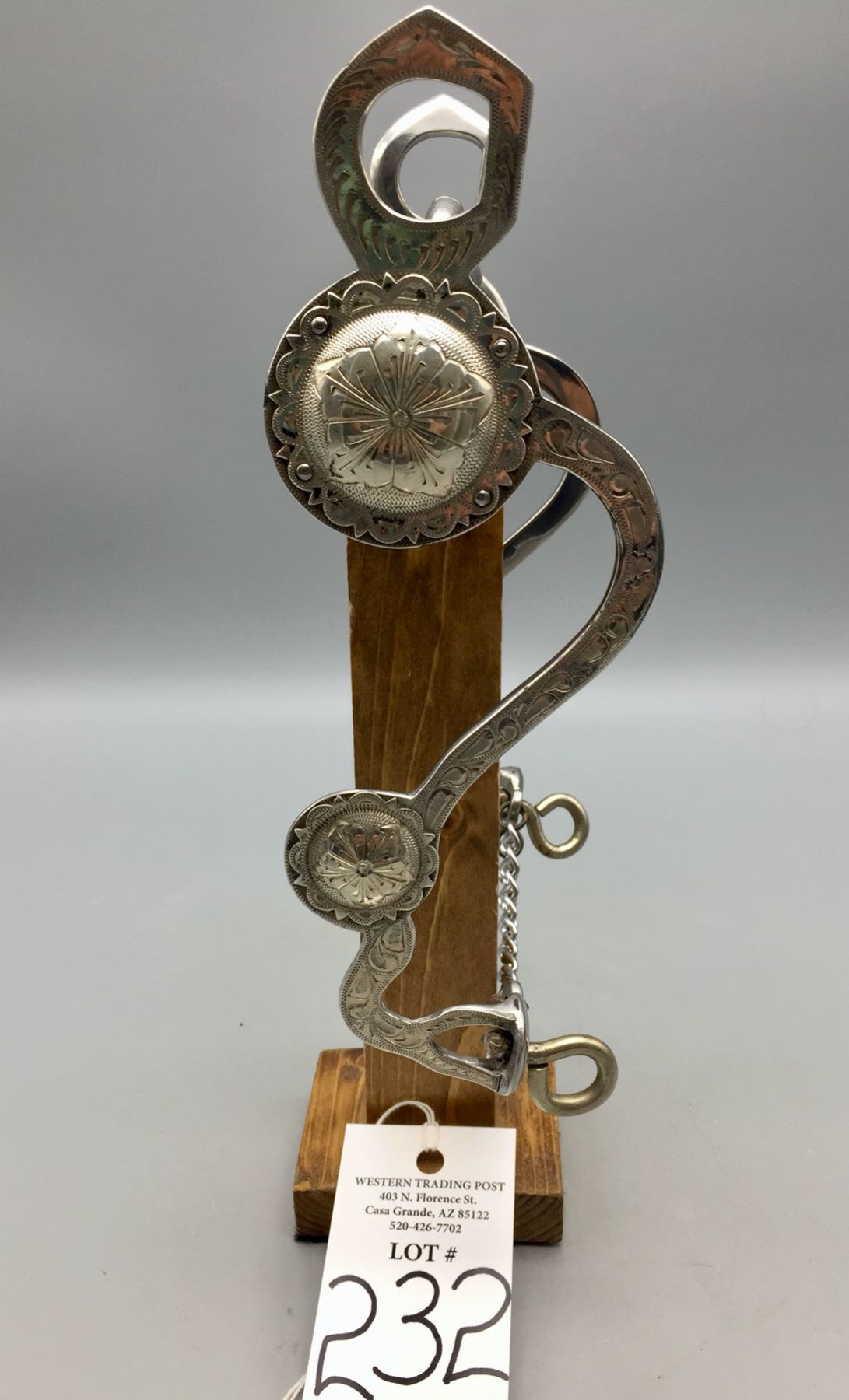 Description: Presented for sale in this lot is an engraved bit made by Norm and Chet Vogt. The Star marked Vogt items are from Vogt Silversmiths between 1971 to 1989 when Chet and Norm Vogt were running the business. Maker: Chet and Norm Vogt. Approx. Age: Vintage. Size: 5-¼" mouth and 9" long shank overall. Condition: Good for its age, normal wear expected. Please look closely at the pictures - they are an important part of our description. Shipping: There will be a $5 handling / packaging fee for shipping this lot. The actual cost of postage will be added on top of that.