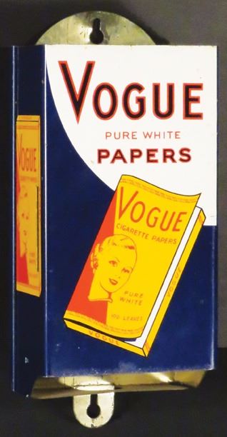 Vogue Cigarette Papers Tin Display. Paint loss on back otherwise excellent condition. 3 X 7 X 2 inches.