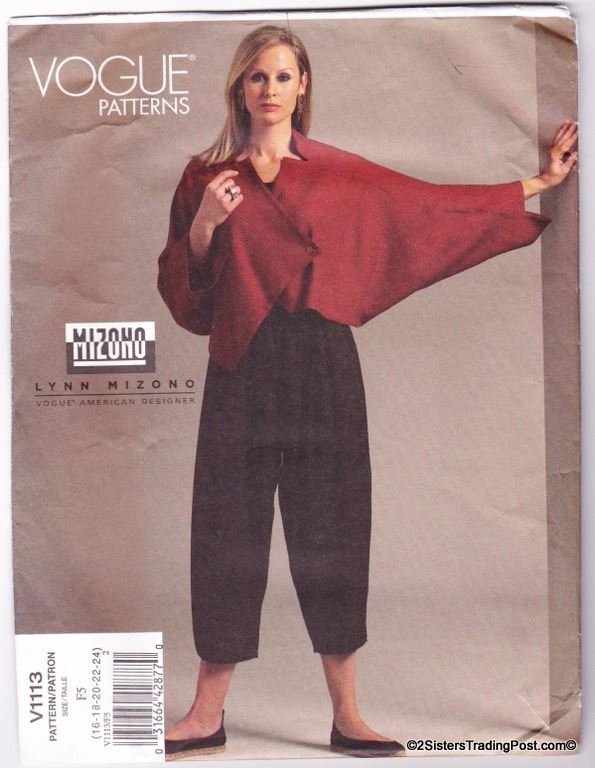 Vogue jacket and pant pattern #V1113/F5 by Vogue American designer Lynn Mizono. Size 16-18-20-22-24 MSRP $30.00