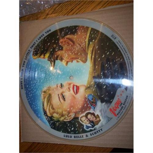 I purchased a number of the old Vogue Picture Disks-records.These were only made between 1946-47.Very colorful and in very good condition.These look wonderful hung on a wall by an old jukebox or displayed standing up.This one is by Lulu Belle & Scotty.One side is I Get A Kick Out Of Corn and the other side is Have I Told You Lately That I Love You.