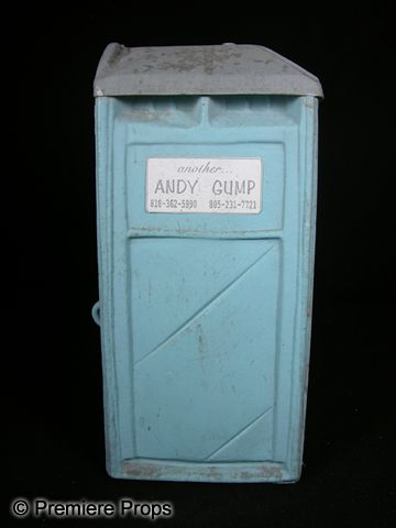 Miniature set piece of an Andy Gump portable toilet from the production of Volcano (1997). 20th Century Fox label affixed to their interior of most. Oversized item. Additional postage required.