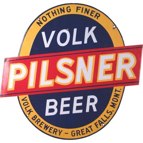 Volk Pilsner Beer 2 sided Porcelain Sign Great Falls, Mt 36 x 36