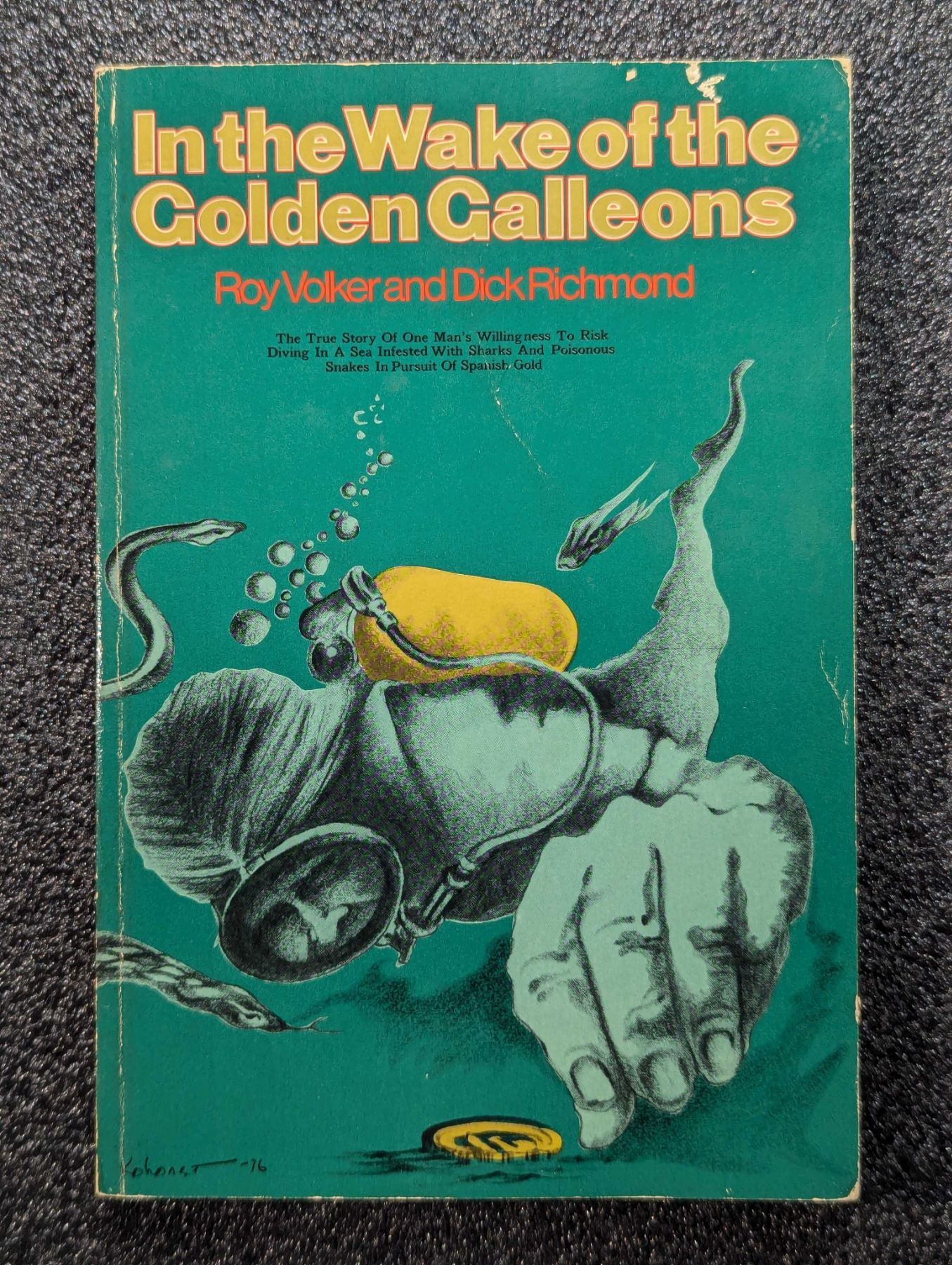 Volker, Roy & Dick Richmond. IN THE WAKE OF THE GOLDEN GALLEONS. OroQuest Press, St. Louis. 1976. 8vo. (8), 149, (3) pages. original pictorial card covers. B&w photos throughout. English text. The David Baker Library. near Fine. This book tells the story of Roy Volker's quest for the 'Maravillas' treasure in the 1960s. It includes adventures with Mel Fisher, Art Hartman and Bob Marx. Lot weight: 0 lbs 9oz. Subject(s): Sunken Treasure.