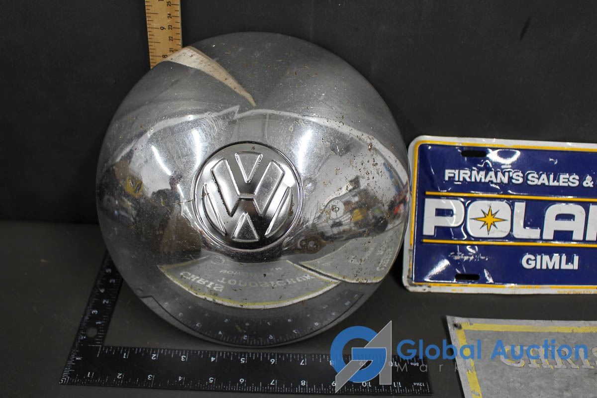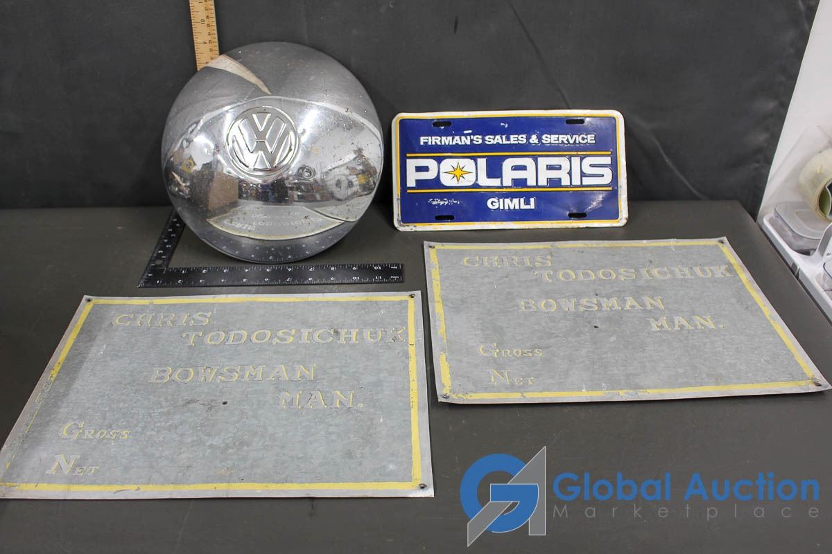 Volkswagon Hub Cap, Polaris Plate & 2 Bowsman Signs